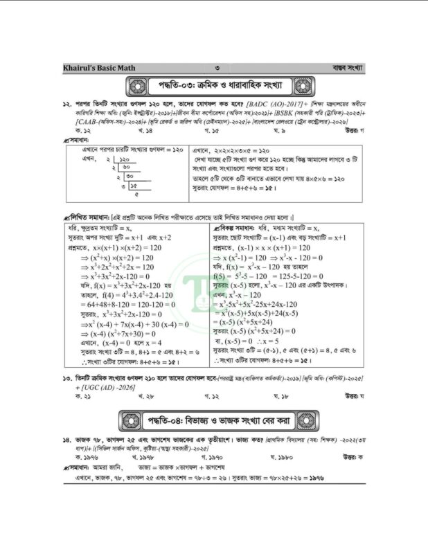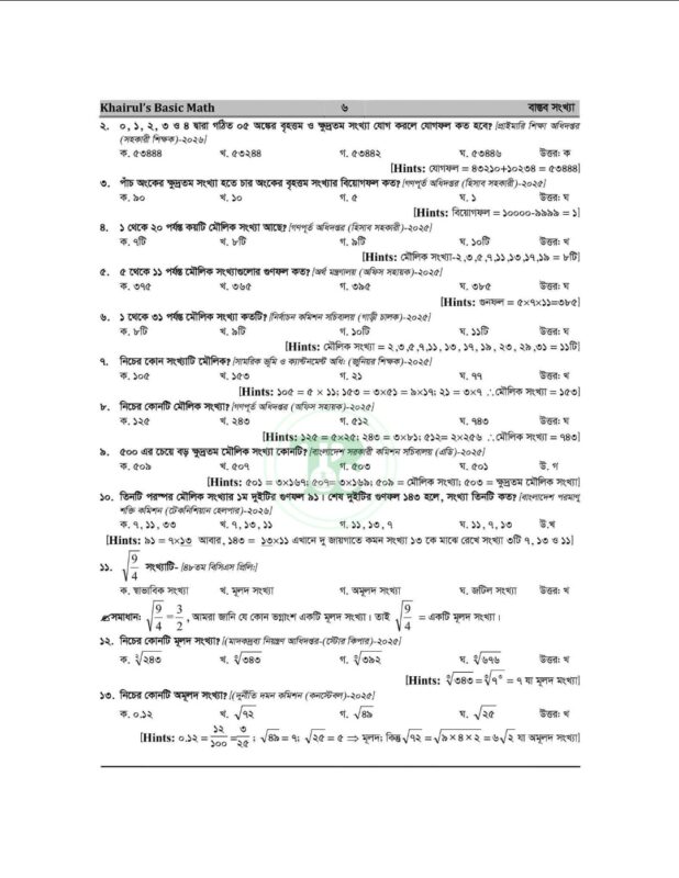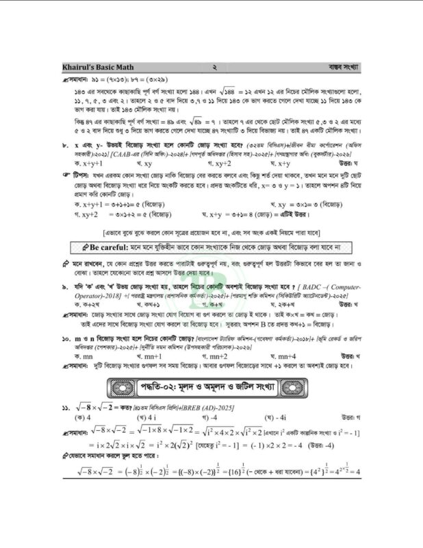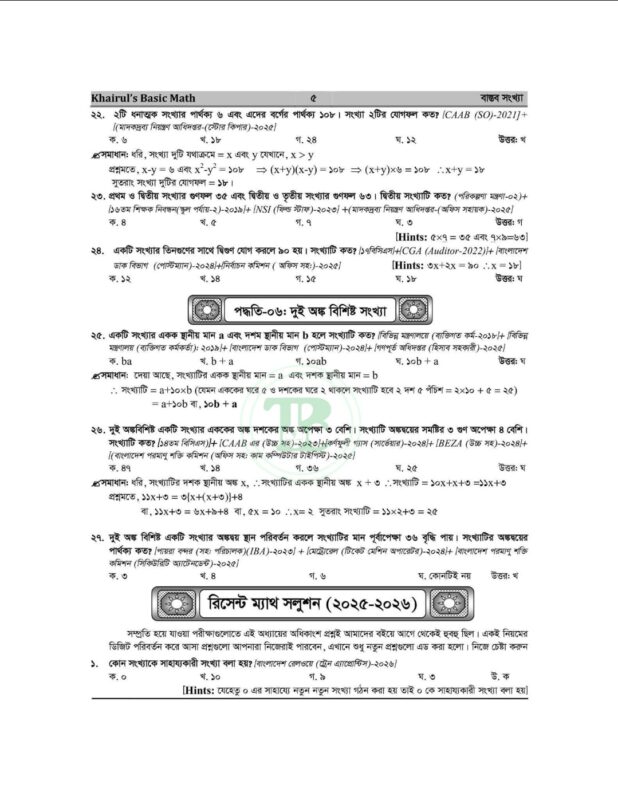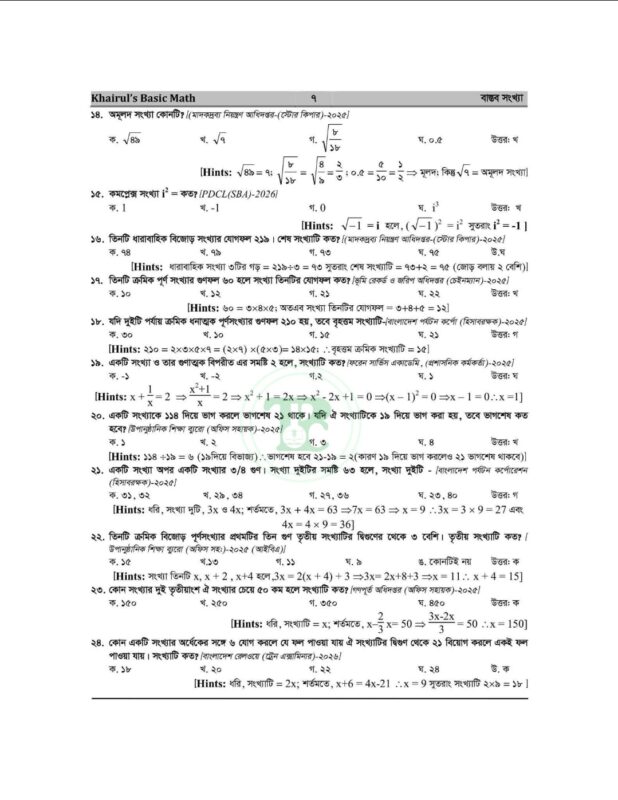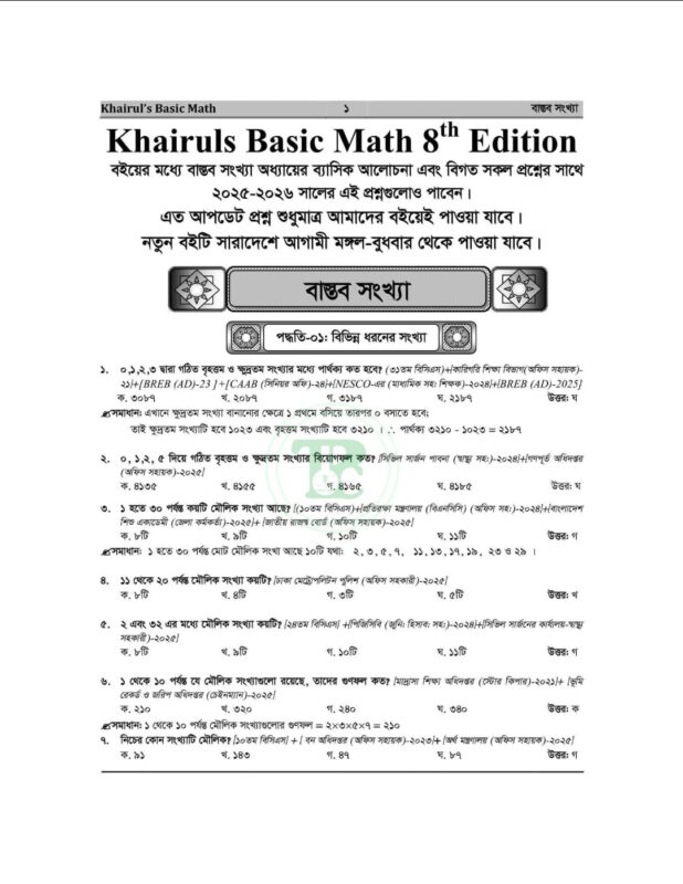 খায়রুলস বেসিক ম্যাথ (৮ম সংস্করণ) বর্তমান সময়ের অন্যতম আপডেটেড ও কম্বিনেশনভিত্তিক গণিত প্রস্তুতি বই। ব্যাসিক ম্যাথ ৮ম ইডিশন বইয়ে বাস্তব সংখ্যা টপিকের ২০২৫-২০২৬ সালের ৫৭টি প্রশ্ন ও সমাধান । এভাবে প্রতিটা টপিকের প্রশ্ন শেয়ার করা যাবে। এত এত আপডেট কালেকশনের সকল ম্যাথের এত সুন্দর কম্বিনেশনে সমাধানের বই যদি আপনাকে ইফেকটিভ মনে না হয়, তাহলে আর কোন বই মনে হবে বলেন!!! কয়েকটা ম্যাথ বই যাচাই না করে যদি মাত্র ১টা বই সংগ্রহ করতে চান, তাহলে আমাদের “খায়রুলস বেসিক ম্যাথ (৮ম সংস্করণ)” বইটা সংগ্রহ না করলে পরে আফসোস করবেন।