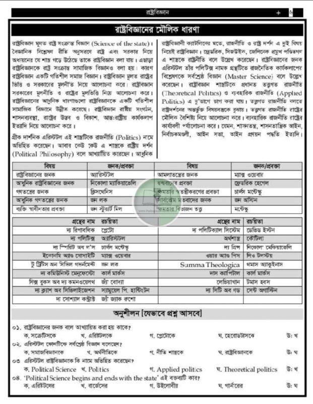 ৪৯তম বিসিএস স্পেশাল রাষ্ট্রবিজ্ঞান ফাইনাল সাজেশন ও মডেল টেষ্ট