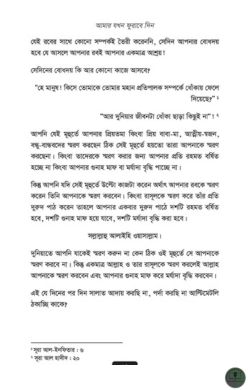 আমার যখন ফুরাবে দিন—এটি আত্মশুদ্ধি, মৃত্যু-সচেতনতা ও অন্তর্জাগরণের এক গভীর উপলব্ধির বই। সুরাইয়া কবীর সাথী রচিত এবং সাথী প্রকাশন থেকে প্রকাশিত এই গ্রন্থটি মানুষকে জীবনের ক্ষণস্থায়িত্ব, দুনিয়ার মোহ এবং আখিরাতের বাস্তবতার মুখোমুখি দাঁড় করায়। দিন ফুরিয়ে যাওয়ার বাস্তবতা, ওপারে ফেরার অনিবার্য ডাক—এই বইয়ের প্রতিটি পঙ্ক্তিতে সেই বোধ গভীরভাবে ধরা দিয়েছে। লেখক আমাদের মনে করিয়ে দেন, মানুষ যতই আনন্দ, কোলাহল ও ব্যস্ততায় ডুবে থাকুক—শেষ পর্যন্ত সবকিছু গুটিয়ে নিতে হয় একটি মৃত্যুর দলীলে। এই দুনিয়ায় আমাদের উপস্থিতি কতটা ক্ষণস্থায়ী ও নগণ্য, অথচ তাকে ঘিরেই কত আয়োজন, কত স্বপ্ন, কত আকাঙ্ক্ষা—সে সত্যটি বইটি অত্যন্ত শক্তিশালী উপমা ও ভাষায় তুলে ধরে। যারা দুনিয়ার ব্যস্ততার ভিড়ে নিজেকে হারিয়ে ফেলেছেন, মৃত্যু ও আখিরাতকে ভুলে যাচ্ছেন, তাদের জন্য আমার যখন ফুরাবে দিন হতে পারে একটি শক্তিশালী রিমাইন্ডার—যা হৃদয় নাড়িয়ে দেয় এবং অন্তরকে আল্লাহমুখী করে তোলে, ইনশা-আল্লাহ।