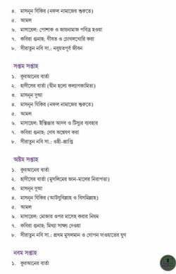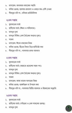 ৬. মাসায়েল: দৈনন্দিন জীবনের জরুরি বিধি-বিধান, ফরজ নফল ও বিভিন্ন পর্যায়ের ইবাদত, ব্যক্তিগত পারিবারিক সামাজিক ও অর্থনৈতিক জীবনের শরয়ী নীতিমালা সুবিন্যস্ত আকারে তুলে ধরা হয়েছে এখানে।