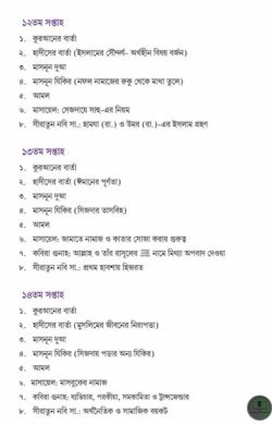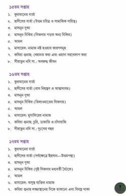 ২. হাদিসের বার্তা: ইমাম নববীর ৪০ হাদিস হিসেবে প্রসিদ্ধ পুস্তকের ৪২টি হাদীসসহ গুরুত্বপূর্ণ আরো দশটি হাদিস, আরবি মূলপাঠ, সাবলীল বাংলা অনুবাদ এবং মর্মকথা দিয়ে সাজানো হয়েছে ৫২ সপ্তাহের সিলেবাস।