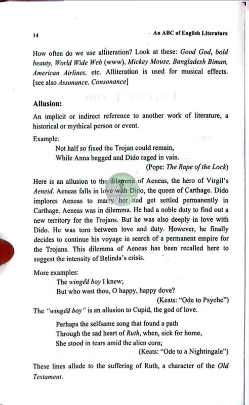 I have read with interest An ABC of English Literature by Dr Mofizar Rahman. Intended for students of English literature in this country, the book, divided into four sections dealing with literary terms, genres, periods of English literature and Greek and Roman mythology, is an excellent introduction to the study of English literature. Although a number of standard works on the aspects covered in the book exist, they are hardly suitable for students in this part of the world because the treatment of the subjects and the language are above the level of the average non-native student of English. Dr Rahman has drawn on these works as acknowledged in the bibliography; but with the needs and abilities of our students at the back of his mind, he has presented the materials concisely and in simple lucid English. I think An ABC of English Literature is an admirable book and I do hope that it will prove useful for students embarking on literary studies.