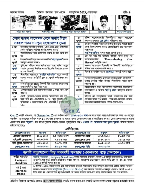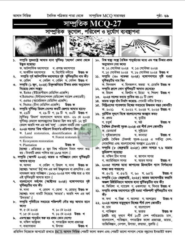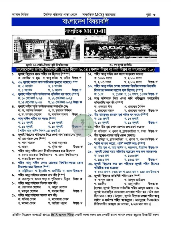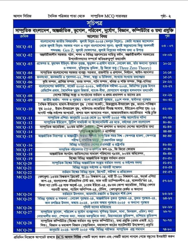 আসাদ সাম্প্রতিক MCQ সারাবছর (জানুয়ারি ২০২৪-আগস্ট ২০২৫ পর্যন্ত)