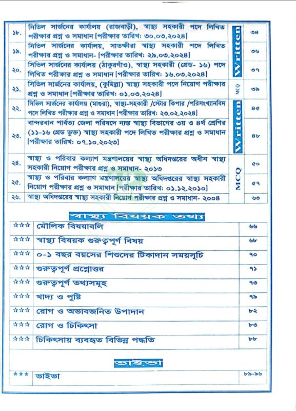 ক্যাম্পাস স্বাস্থ্য সহকারী নিয়োগ সহায়িকা (এমসিকিউ, লিখিত ও ভাইবা)