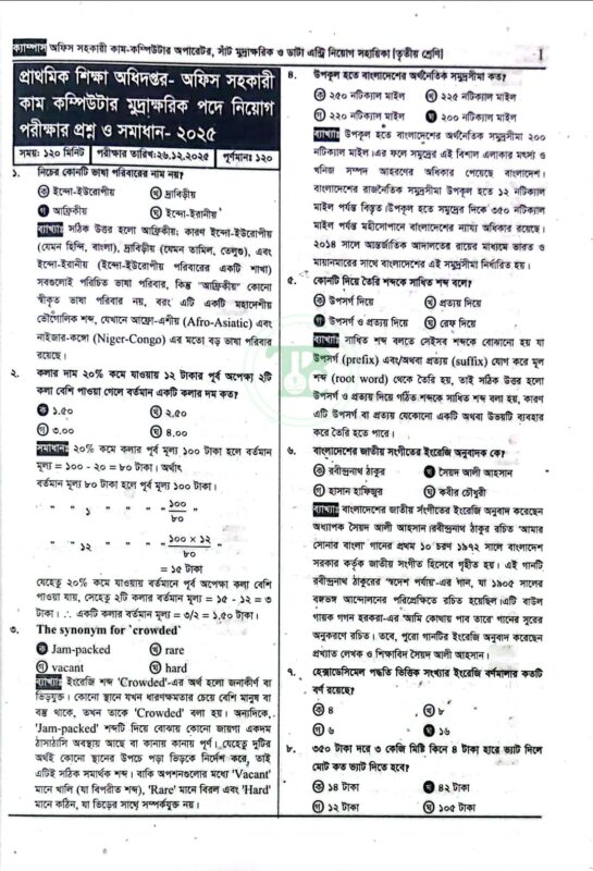 ক্যাম্পাস অফিস-সহকারী কম্পিউটার অপারেটর সাঁটমুদ্রাক্ষরিক ডাটা এন্ট্রি অপারেটর নিয়োগ সহায়িকা (এমসিকিউ, লিখিত ও ভাইবা)