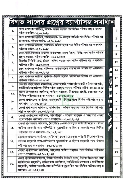ক্যাম্পাস জেলা প্রশাসকের কার্যালয় (ডিসি অফিস) নিয়োগ সহায়িকা (এমসিকিউ, লিখিত ও ভাইবা)