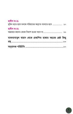 • হাদীসের অনুবাদ-করা বেশ চ্যালেঞ্জিং বিষয়, কারণ সামান্যতম ভুলও পাঠককে নিয়ে যেতে পারে বিভ্রান্তির দিকে। ফলে, অনুবাদকে যথার্থ ও নির্ভরযোগ্য করার ব্যাপারে সর্বোচ্চ খেয়াল রাখা হয়েছে।