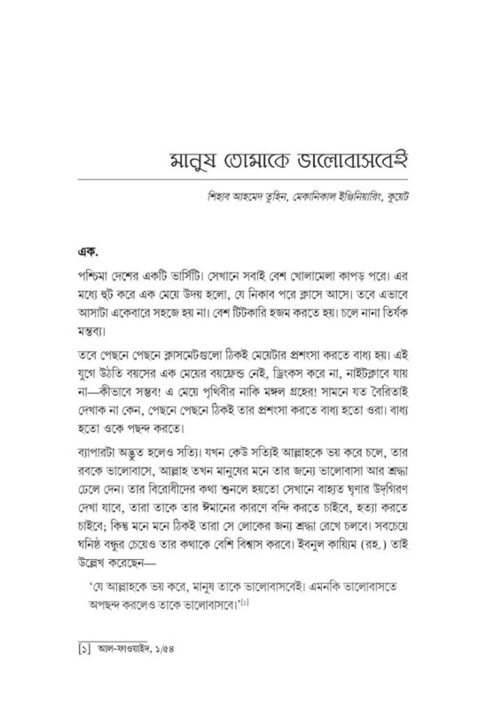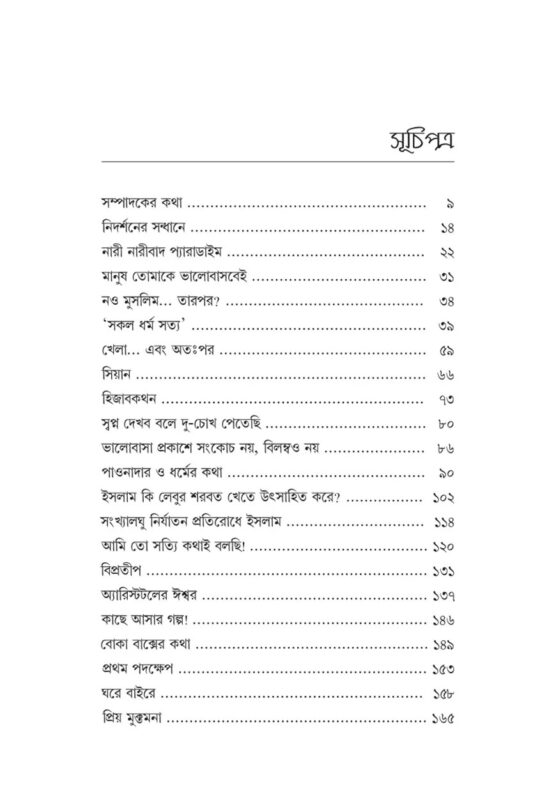 একটি আসলের যদি একটি নকল হতো তাও মানুষ বেঁচে যেত; কিন্তু একটি আসলের যখন অনেকগুলো নকল হয়ে যায়, তখন বিভ্রান্তিই হয়ে ওঠে সাধারণ চিত্র। সব নকলের ভিড়ে আসলটি, আসল পথটি, আসল চাবিটি বেছে নেওয়ার জন্য আমাদের এ বইটি কিছুটা সহায়ক হবে আশা করি, ইনশা আল্লাহ।
