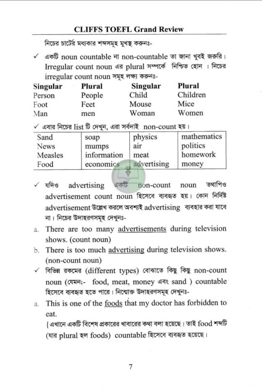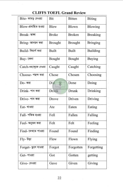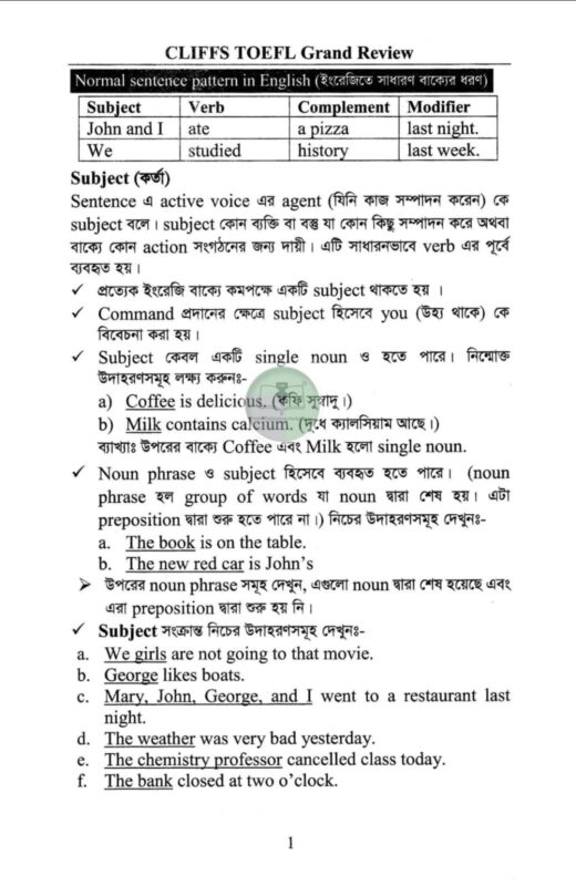 CLIFFS TOEFL Grand Review (বোংলা ভার্সন)যারা ILTS, GMAT, বিসিএস, ব্যাংক, ও অন্যান্য চাকরির পরিক্ষার প্রস্তুতি নিচ্ছেন তাদের জন্য ইংরেজির দারুন একটি সহায়ক বই বইটি CLIFFS TOEFL এর সম্পূর্ণ বাংলা অনুবাদ, যা বাংলাদেশে এটাই প্রথম। সাথে যুক্ত আছে শিক্ষার্থীদের জন্য খুবই গুরুত্বপূর্ণ সব ফিচার।