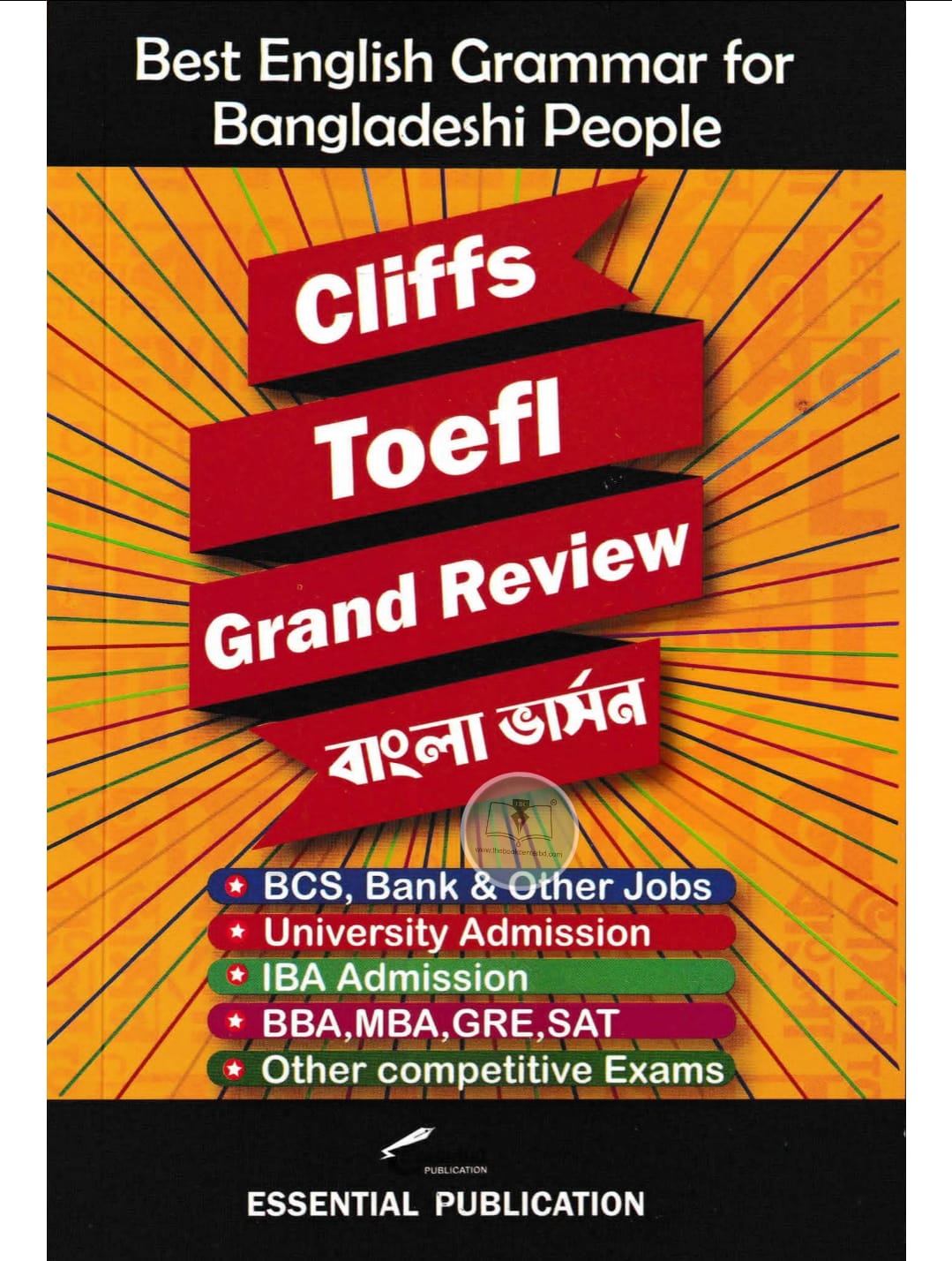 CLIFFS TOEFL Grand Review (বোংলা ভার্সন)যারা ILTS, GMAT, বিসিএস, ব্যাংক, ও অন্যান্য চাকরির পরিক্ষার প্রস্তুতি নিচ্ছেন তাদের জন্য ইংরেজির দারুন একটি সহায়ক বই বইটি CLIFFS TOEFL এর সম্পূর্ণ বাংলা অনুবাদ, যা বাংলাদেশে এটাই প্রথম। সাথে যুক্ত আছে শিক্ষার্থীদের জন্য খুবই গুরুত্বপূর্ণ সব ফিচার।