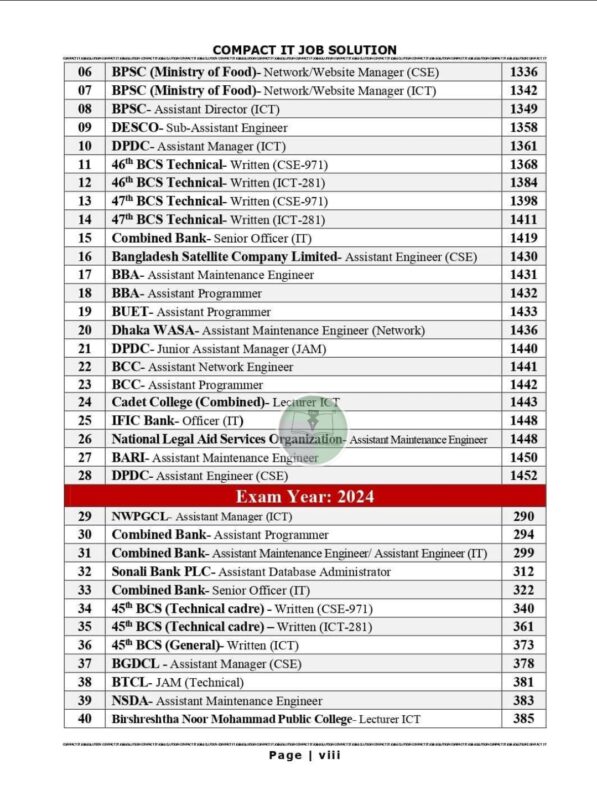 เฆฌเฆเฆเฆฟเฆคเง เฆฌเฆฟเฆญเฆฟเฆจเงเฆจ เฆชเงเฆฐเฆคเฆฟเฆฏเงเฆเฆฟเฆคเฆพเฆฎเงเฆฒเฆ เฆเฆเฆเฆฟ เฆชเฆฐเงเฆเงเฆทเฆพเฆฐ (MCQ + Written) เงฉเงงเงฌ เฆธเงเฆ (BIBM/MIST, BUET, BPSC, DU, NTRCA, BCS & Others) MCQ (เฆฌเงเฆฏเฆพเฆเงเฆฏเฆพ เฆธเฆน) เฆเฆฌเฆ Written เฆชเงเฆฐเฆถเงเฆจเงเฆฐ เฆธเฆนเฆเฆฌเงเฆงเงเฆฏ เฆธเฆฎเฆพเฆงเฆพเฆจ เฆธเฆเฆฏเงเฆพเฆเฆจเฅค เฆฌเฆเฆเฆฟเฆคเง เฆธเฆเฆฒ เฆเฆเฆเฆฟ เฆชเฆฐเงเฆเงเฆทเฆพเฆฐ เฆฏเงเฆฎเฆจ: Bangladesh Bank, Combined Bank, BPSC, BCS, Ministry, Power sector (DESCO, NESCO, PGCB, BPDB, BREB), Gas Company, BTCL, BTRC, BCC, ICT Teacher recruitment, NTRCA, NACTAR and CSE/ ICT M.Sc. Admission เฆธเฆน เฆฌเฆฟเฆเฆค เงงเงซ เฆฌเฆเฆฐเงเฆฐ เฆชเงเฆฐเฆถเงเฆจเงเฆฐ เฆธเฆฎเฆพเฆงเฆพเฆจ เฆชเฆพเฆฌเงเฆจเฅค “COMPACT IT Job Solution Question Bank (MCQ+Written) 2026” เฆเฆเฆพเฆ เฆฌเฆพเฆเฆพเฆฐเง เฆชเงเฆฐเฆฅเฆฎ เฆเฆฌเฆ เฆเฆเฆฎเฆพเฆคเงเฆฐ เฆเฆเฆเฆฟ เฆเฆฌเงเฆฐ เฆชเงเฆฐเงเฆฃเฆพเฆเงเฆ Job Solution (Question Bank), เฆฏเฆพ เฆเฆเง เฆฌเฆพเฆเฆพเฆฐเง เฆเฆเฆจเฆ เฆเฆฟเฆฒ เฆจเฆพ, เฆเฆเฆจเฆ เฆจเงเฆเฅค เฆเฆถเฆพ เฆเฆฐเฆฟ Question Pattern เฆฌเงเฆเฆคเง/เฆเฆพเฆจเฆคเง เฆธเฆฌเฆพเฆ เฆเฆชเฆเงเฆค เฆนเฆฌเงเฆจเฅคเฅค