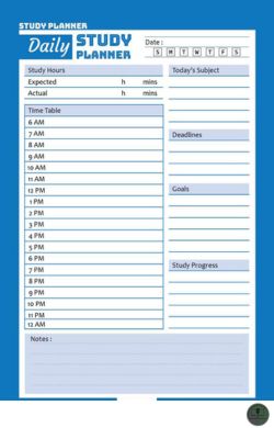 স্টাডি প্ল্যানিং করার জন্য ডেইলি স্টাডি প্ল্যানার একটি স্টুডেন্ট প্ল্যানার হলো একটি ওয়ার্কবুক। যা আপনাকে অণুপ্রাণিত এবং টার্গেট থাকতে সাহায্য করবে। আমরা জানি শিক্ষার্থীদের যখন হোম ওয়ার্ক থাকে, তারা প্রায়ই এটি লিখতে ভুলে যায় এবং শেষ অ্যাসাইনমেন্টগুলি হারিয়ে ফেলে। স্টুডেন্ট প্ল্যানারটি একজন শিক্ষার্থীর পরিকল্পনাকারী হিসেবে সাহায্য করবে ইনশা-আল্লাহ।এ প্ল্যানারটি আপনাকে লক্ষ্য নির্ধারণ করতে, আপনার সময় পরিচালনা করতে এবং কাজে থাকতে সাহায্য করবে।স্টুডেন্ট প্ল্যানারটি আপনাকে প্রতিটি ক্লাসের জন্য কতটা কাজের প্রয়োজন তার একটা ধারণা দিবে; যাতে আপনি সে অনুযায়ীপরিকল্পনা করতে পারেন।আপনি নিজের জন্য কী করা দরকার তা লিখে রাখার সময় দেখবেন; এতে নিজেকে নিয়ন্ত্রণ করা কতটা সহজ হয়ে যাচ্ছে।যা দেখে আপনি অবাক হবেন..