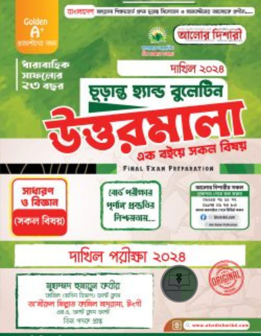 দাখিল ২০২৪ হ্যান্ড বুলেটিন উত্তরমালা দাখিল পরীক্ষার্থীদের জন্য একটি পূর্ণাঙ্গ ও নির্ভরযোগ্য সহায়ক গ্রন্থ। সাফল্যের আলোকিত ভোরে স্বাগতম! ধারাবাহিক সাফল্যের ২৩তম বৎসরে আলোর দিশারী পাবলিকেশন্স এর সুনামের সাথে অগ্রযাত্রা । আলহামদুলিল্লাহ! একটা গল্প দিয়ে শুরু করা যাক… রাস্তার ধারে ভিক্ষা করছিল এক ভিক্ষুক। একজন সহকর্মী পথচারী ভিক্ষুকের প্রতি দয়াপরবশ হয়ে একটা কাগজে লিখে দিলো-“আমি অন্ধ একজন মানুষ, বৃদ্ধ বয়সে কাজের ক্ষমতাও আমার নেই। তাই আমার অক্ষমতার জন্য আপনাদের সবার কাছে আমি সাহায্যপ্রার্থী।” লেখা দেখে সবাই সাহায্য করছে, তাতে অন্ধ বৃদ্ধের আর কথাগুলো বলতে হচ্ছে না বারবার। কয়েকদিন এভাবে কেটে গেলো। আরেক পথচারী এসে লেখাটা বদলে অন্য কাগজ সেখানে লাগিয়ে দিলো। তাতে অন্ধ ভিক্ষুকের রোজগার অনেক বেড়ে গেলো। অবাক বৃদ্ধ জানতে পারলো-নতুন কাগজটায় লেখা ছিল, “আজকের দিনটা অনেক সুন্দর অথচ আমি দেখতে পাচ্ছি না”। বন্ধুরা, দ্রুত বদলে যাওয়া এই পৃথিবীর সবচেয়ে বড় চ্যালেঞ্জ হচ্ছে সময়ের সাথে নিজেকে টিকিয়ে রাখা, সময়ের দাবী অনুযায়ী নিজেকে প্রস্তুত করা। আমাদের দেশের প্রেক্ষাপটে এই প্রস্তুতি বলতে আমরা বুঝি সামসময়িক শিক্ষাব্যবস্থায় নিজেদের শ্রেষ্ঠত্বের প্রমাণ দিয়ে অসংখ্য প্রতিযোগী থেকে নিজেকে আলাদা করে ফেলা। কাজটি জটিল, তবে অসম্ভব নয়। তাই প্রয়োজন নিজেকে যথাসময়ে তৈরি করে ফেলা। মনে রাখতে হবে, এই প্রস্তুতিতে তোমাকে যেমন সিলেবাস সম্পূর্ণ করতে হয়, তেমনি বুঝে নিতে হবে প্রশ্নকর্তার চিন্তা-ভাবনা এবং তোমার সাথে প্রতিদন্দ্বিতায় নামতে যাওয়া প্রতিযোগী বন্ধুদের প্রস্তুতি ও কৌশল সম্পর্কেও। আর এই কাজটিতেই তোমার পাশে থাকার অঙ্গীকার করে আসছে বাংলাদেশের মাদ্রাসা শিক্ষার আরেক দিকপাল, দীর্ঘ প্রায় দুই দশক থেকে নিরবচ্ছিন্ন সেবা দানকারী, স্বনামধন্য প্রকাশনা “আলোর দিশারী পাবলিকেশন্স”। আমাদের প্রকাশনাসমূহ তোমাদের বৃহৎ সিলেবাসকে শুধু সংক্ষিপ্তভাবেই উপস্থাপন করবে না, এসব প্রকাশনা থেকে তোমরা পাবে বছরজুড়ে বিভিন্ন দিক নির্দেশনা ও ব্যতিক্রমধর্মী উপস্থাপনার কৌশল। ‘সাফল্যের আলোকিত বিশ্ব তোমাকে দেখাতে’ এই স্লোগানকে সামনে রেখে দাখিল পরীক্ষার্থীদের জন্য তৈরি করা হল হ্যান্ড বুলেটিন উত্তরমালা। যার সংক্ষিপ্ততা তোমাদের গুরুত্বপূর্ণ বিষয়গুলো খুঁজে নিতে সাহায্য করবে। আমাদের প্রত্যাশা-তোমাদের সাফল্যময় জীবনের পরশে এ ধরণীতে হোক আরেকটি প্রসন্ন সোনালী সকালের উদয়। মহান মুক্তিযুদ্ধের চেতনাকে বুকে লালন করে তোমরা হয়ে যাও আগামীর বাংলাদেশসহ সমগ্র বিশ্বের সম্ভাবনাময় নেতৃত্ব। সফল হোক তোমাদের সকল প্রচেষ্টা। ‘আলোর দিশারী’র পথ নির্দেশনায় ও আলোকময় আশীর্