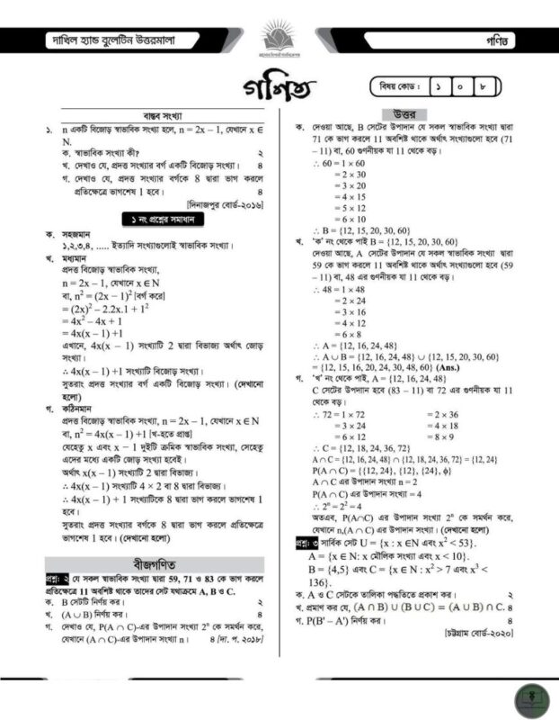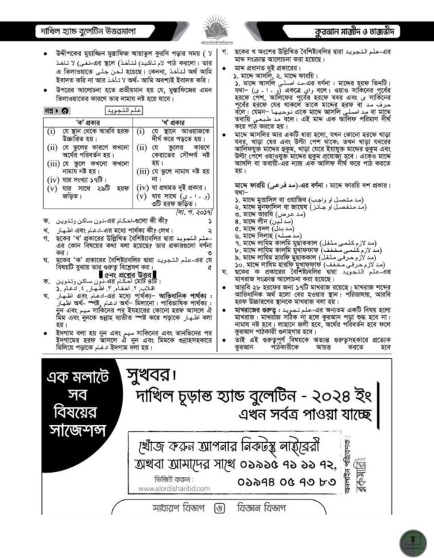 দাখিল ২০২৪ হ্যান্ড বুলেটিন উত্তরমালা