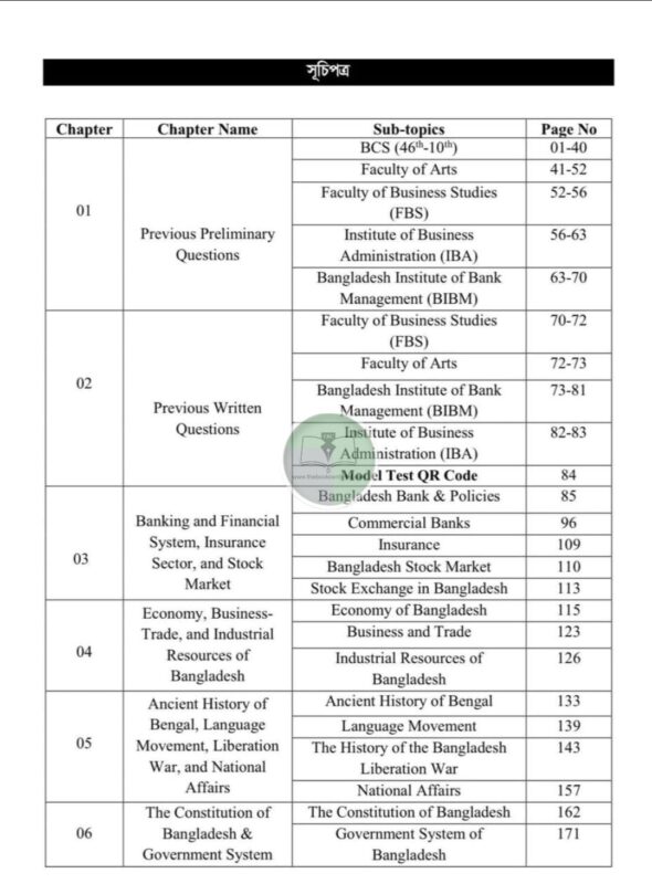 ১.বিগত বছরের সর্বোচ্চ সংখ্যক অধ্যায় ভিত্তিক প্রশ্ন সংযোজন। ২.বাংলা ও ইংরেজি ভার্সনের সমন্বয় যাতে প্রিলিমিনারি ও রিটেন কাভার হয়।