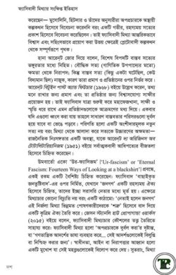 ফ্যাসিবাদী মিথ্যার সংক্ষিপ্ত ইতিহাস বইটি ফেদেরিকো ফিনচেলস্টেইন-এর একটি গভীর বিশ্লেষণধর্মী রচনা, যেখানে ফ্যাসিবাদের উৎপত্তি, বিকাশ এবং মিথ্যাচারের রাজনৈতিক কৌশল বিস্তারিতভাবে তুলে ধরা হয়েছে। ফ্যাসিবাদ কেবল একটি রাজনৈতিক মতবাদ নয়; এটি এমন এক চিন্তাধারা, যা সমাজ, রাজনীতি এবং ব্যক্তির মনস্তত্ত্বকে একটি একক ব্যাখ্যার মাধ্যমে নিয়ন্ত্রণ করতে চায়। এই বইয়ে লেখক দেখিয়েছেন কীভাবে ফ্যাসিবাদী শক্তি মিথ্যা, প্রোপাগান্ডা এবং বিকৃত সত্য ব্যবহার করে জনগণের চিন্তা ও বিশ্বাসকে প্রভাবিত করে। ইতিহাস, রাজনৈতিক দর্শন এবং আধুনিক বিশ্বের বাস্তব উদাহরণের আলোকে বইটি ব্যাখ্যা করে—কেন এবং কীভাবে ফ্যাসিবাদী বক্তব্য সমাজে গ্রহণযোগ্য হয়ে ওঠে। একই সাথে এতে তুলে ধরা হয়েছে ব্যক্তির আচরণ, সামাজিক সংকট এবং রাজনৈতিক প্রেক্ষাপটের সাথে ফ্যাসিবাদের সম্পর্ক। সহজবোধ্য ভাষা ও বিশ্লেষণধর্মী উপস্থাপনায় ফ্যাসিবাদী মিথ্যার সংক্ষিপ্ত ইতিহাস বইটি রাজনৈতিক সচেতনতা বাড়াতে এবং সমকালীন বিশ্বরাজনীতিকে বুঝতে একটি গুরুত্বপূর্ণ গাইড হিসেবে কাজ করে।