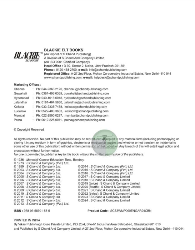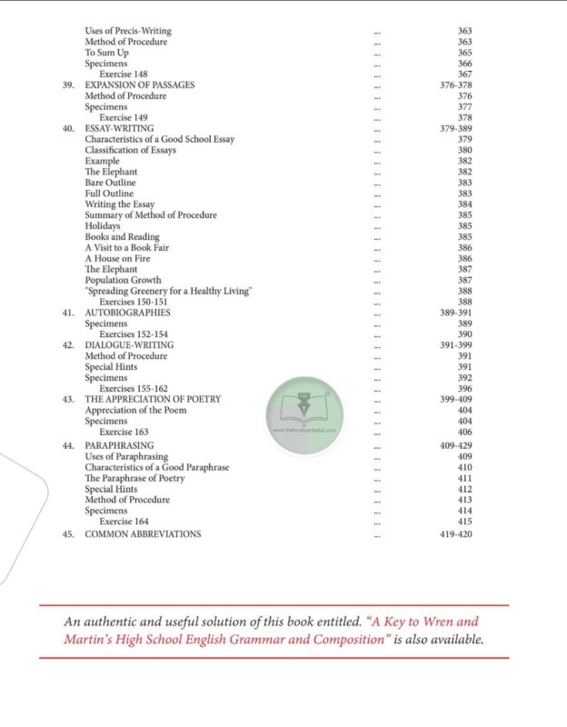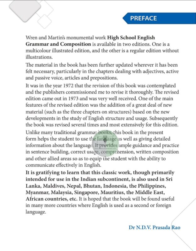 Wren and Martin’s monumental work High School English Grammar and Composition is available in two editions. One is a multicolour illustrated edition, and the other is a regular edition without illustrations. The material in the book has been further updated wherever it has been felt necessary, particularly in the chapters dealing with adjectives, active and passive voice, articles and prepositions. Wren & Martin’s High School English Grammar & Composition – updated edition with clear rules, exercises & examples for mastering English grammar.