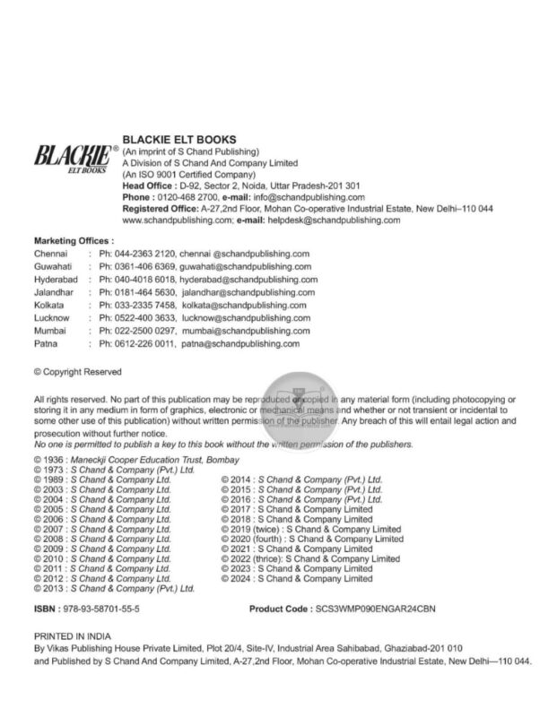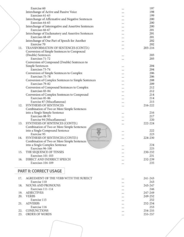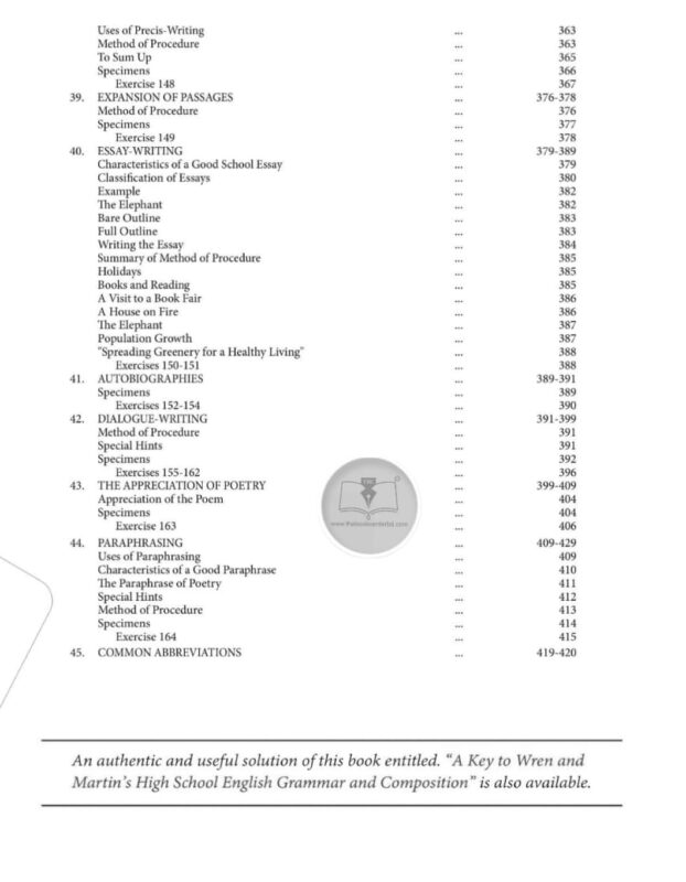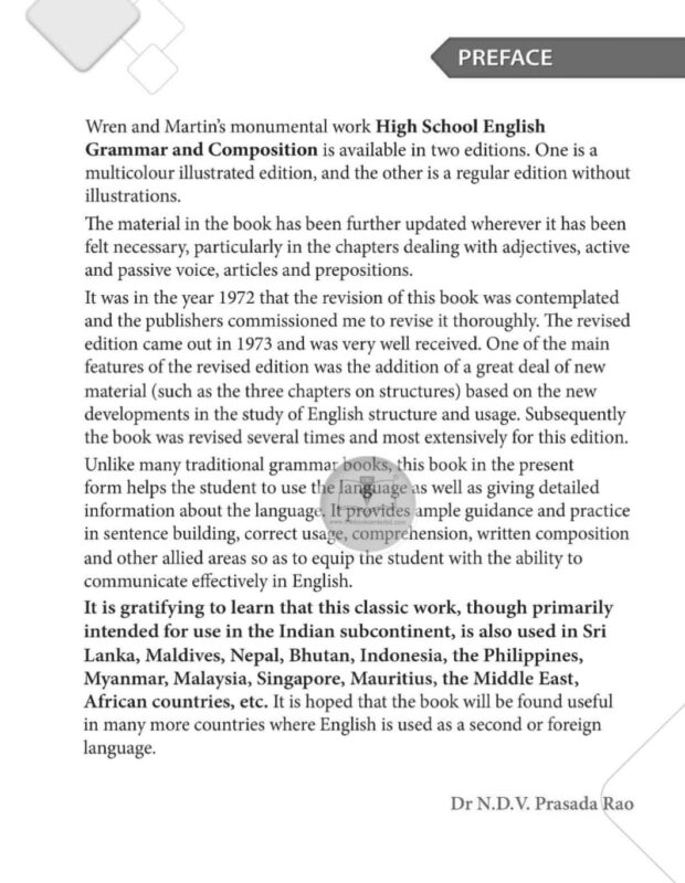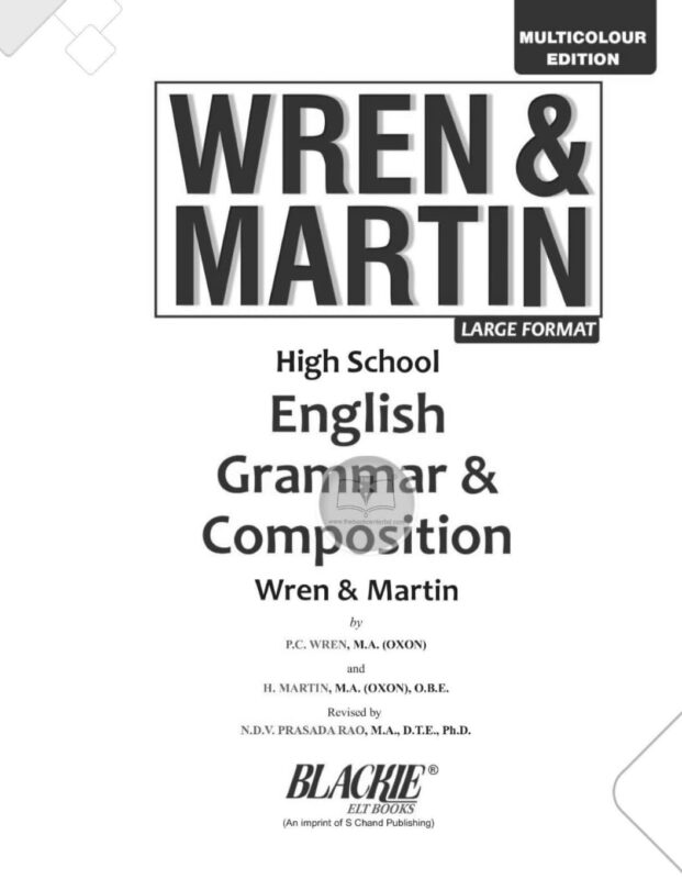 Wren and Martin’s monumental work High School English Grammar and Composition is available in two editions. One is a multicolour illustrated edition, and the other is a regular edition without illustrations. The material in the book has been further updated wherever it has been felt necessary, particularly in the chapters dealing with adjectives, active and passive voice, articles and prepositions. Wren & Martin’s High School English Grammar & Composition – updated edition with clear rules, exercises & examples for mastering English grammar.