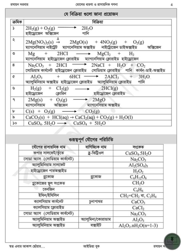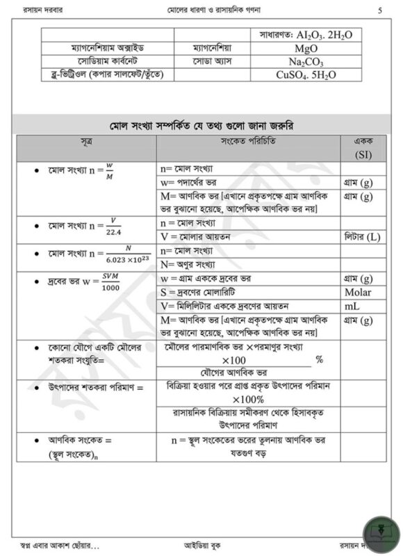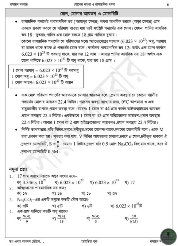 আইডিয়া বুক মোলের ধারনা ও রাসায়নিক গণনা-নবম দশম শ্রেণি অধ্যায় ৬