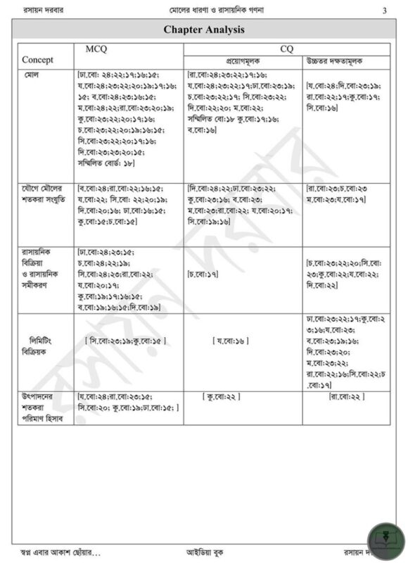 বইটি পরীক্ষাভিত্তিক প্রস্তুতির পাশাপাশি ধারণাভিত্তিক শেখার উপরও জোর দেয়, যাতে শিক্ষার্থীরা রসায়নের জটিল বিষয়গুলো আত্মবিশ্বাসের সঙ্গে আয়ত্ত করতে পারে। এতে বাস্তব জীবনের উদাহরণসহ গাণিতিক সমস্যা সমাধানের কৌশলও তুলে ধরা হয়েছে। বিজ্ঞান বিভাগে অধ্যয়নরত নবম-দশম শ্রেণির শিক্ষার্থীদের জন্য এটি হবে একটি নির্ভরযোগ্য সহায়ক। রসায়ন দরবার পাবলিকেশনের এই আইডিয়া বুক মোলের ধারনা ও রাসায়নিক গণনা বইটি শিক্ষকদের পাঠদানে এবং শিক্ষার্থীদের স্ব-অধ্যয়নে সমানভাবে কার্যকর।