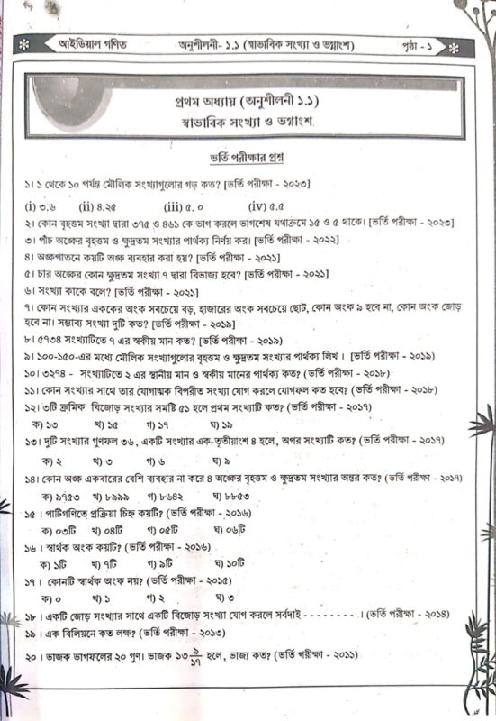 আইডিয়াল ক্যাডেট গনিত গাইড ২০২৬
