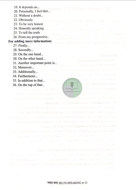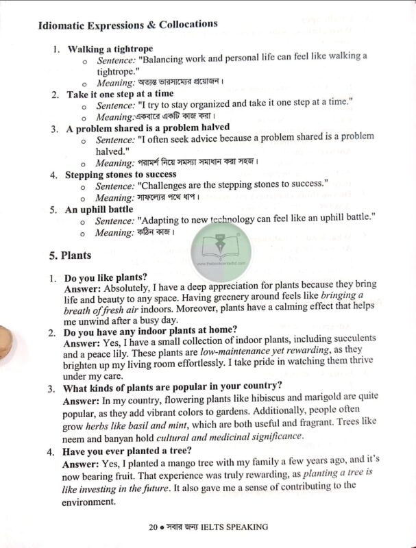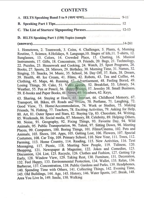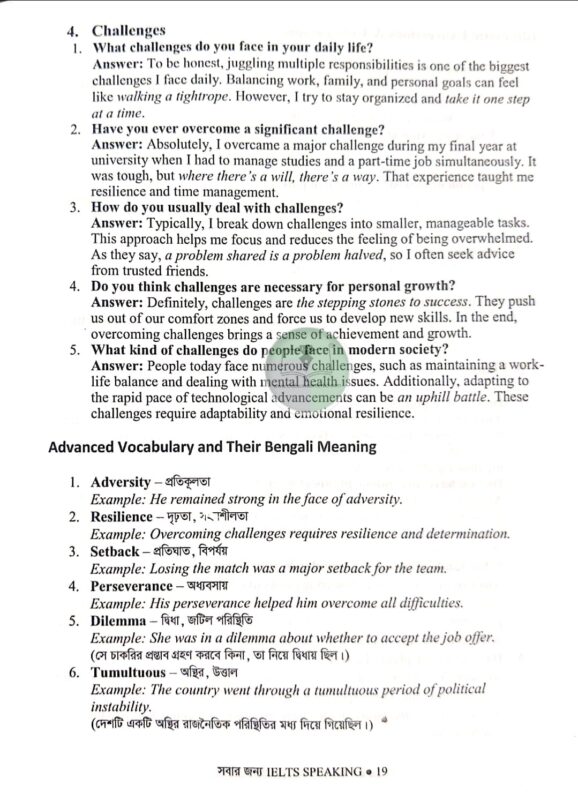 ✔ Grammar ও Tense-এর ব্যবহার নিশ্চিত করতে সহজ নির্দেশনা রয়েছে IELTS Speaking-এ উন্নতি করতে ও পরীক্ষায় সেরা স্কোর পেতে এখনই সংগ্রহ করুন! সময় নষ্ট করবেন না—বইটি সংগ্রহ করুন এখনই!