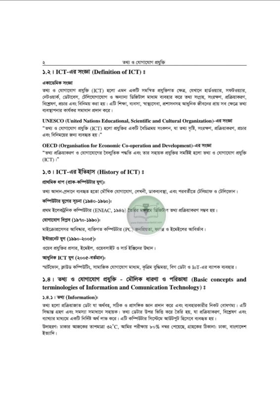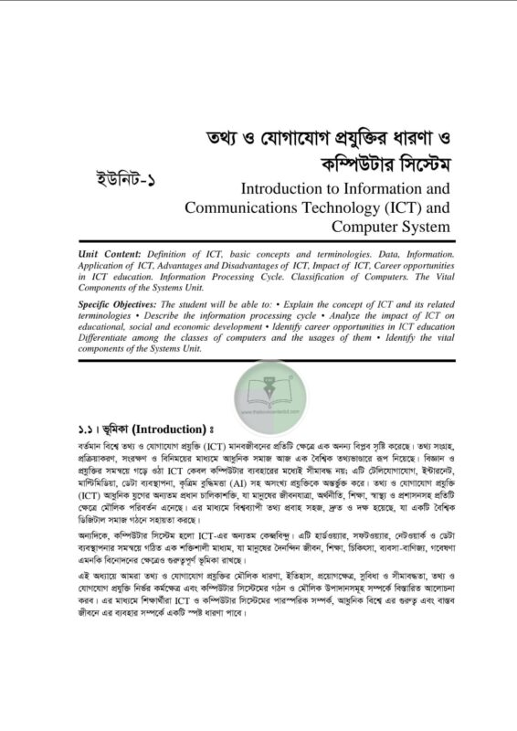 “তথ্য ও যোগাযোগ প্রযুক্তি” এই বইটি প্রণয়নের মূল উদ্দেশ্য হলো অনার্স পর্যায়ের শিক্ষার্থীদের জন্য তথ্য ও যোগাযোগ প্রযুক্তি (ICT) বিষয়কে সহজ, আধুনিক ও ব্যবহার উপযোগীভাবে উপস্থাপন করা। বইটিতে মোট আটটি অধ্যায় অন্তর্ভুক্ত করা হয়েছে, যেখানে ICT-এর সংজ্ঞা ও মৌলিক ধারণা, হার্ডওয়্যার ও সফটওয়্যার, ওয়ার্ড প্রসেসিং, স্প্রেডশীট, প্রেজেন্টেশন অ্যাপ্লিকেশন, তথ্য নিরাপত্তা, ইন্টারনেট ও নেটওয়ার্কিং, ডেটা অ্যানালিটিক্স, কৃত্রিম বুদ্ধিমত্তা (AI) এবং মেশিন লার্নিং (ML)-এর মতো গুরুত্বপূর্ণ বিষয়সমূহ ধাপে ধাপে আলোচনা করা হয়েছে।