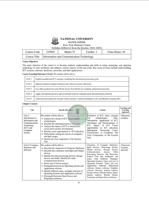 তথ্য ও যোগাযোগ প্রযুক্তি (কোর্স কোড: 219903)