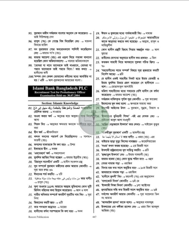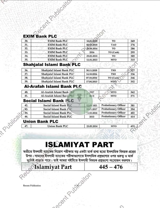 অতীতে ইসলামী ব্যাংক নিয়োগ পরীক্ষায় বড় একটা মার্ক রাখা হতো ইসলামী বিষয়ক প্রশ্নের ওপর। সামনের ইসলামী ব্যাংকের পরীক্ষাগুলোতে ইসলামীক প্রশ্নগুলোর ওপর গুরুত্ব ও মার্ক দুটোই বাড়তে পারে। তাই আমরা “Islami Bank Job Solution” বইটিতে ইসলামী বিষয়ক প্রশ্নগুলো সংযোজন করা হলো। ইসলামী ব্যাংকের একটি সার্কুলার চলমান। সামনে বড় আরেকটি সার্কুলার হওয়ার সম্ভাবনা রয়েছে। এছাড়াও অন্যান্য ইসলামী ব্যাংকগুলোতে অনেকগুলো পদ ফাকা হয়েছে যা নিয়োগের মাধ্যমে লোক নেওয়া হবে। তাই যারা ইসলামী ব্যাংকগুলোতে চাকরি করতে ইচ্ছুক তারা ভালো প্রস্তুতির জন্য ইসলামী ব্যাংক নিয়োগ বইটি থেকে প্রশ্নের ধরন দেখতে পারেন। আর প্রস্তুতি শুরু করতে পারেন।