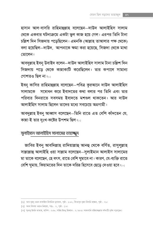 ‘যেমন ছিল বড়দের তাহাজ্জুদ’ বইটি সেই অমলিন গল্পগুলোকে তুলে এনেছে। এতে রয়েছে সাহাবা, তাবেঈন এবং নেককার মানুষদের তাহাজ্জুদের অভ্যাস, তাদের একাগ্রতা ও রবের প্রতি ভালোবাসার চমৎকার বর্ণনা।