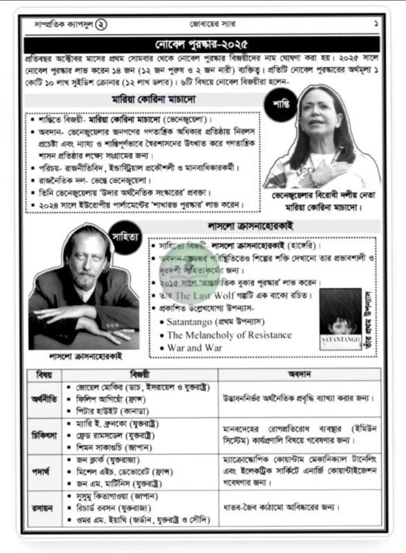 জোবায়ের’স সিরিজের সাম্প্রতিক ক্যাপসুল-২” জোবায়ের’স সিরিজের সাম্প্রতিক ক্যাপসুল-২ বইটি বিশ্ববিদ্যালয়ের ভর্তি পরীক্ষা, বিসিএস, ব্যাংক পরীক্ষা, বিভিন্ন চাকরির পরীক্ষাসহ সকল পরীক্ষার্থীদের সহায়ক বই। এবং ঢাবি খ ও বিভাগ পরিবর্তন ইউনিটের ভর্তি পরীক্ষায় সাম্প্রতিক বিষয়ে সর্বোচ্চ প্রস্তুতির জন্য এটি একটি চমৎকার বই। গতবছর ঢাকা বিশ্ববিদ্যালয় ভর্তি পরীক্ষায় ৩০টি প্রশ্নের মধ্যে ২৯টি প্রশ্ন কম ছিল জোবায়ের’স GK ও সাম্প্রতিক ক্যাপসুল থেকে।