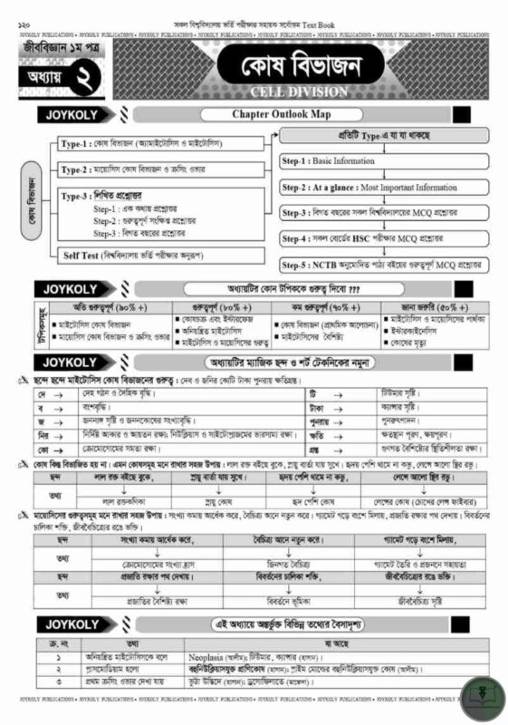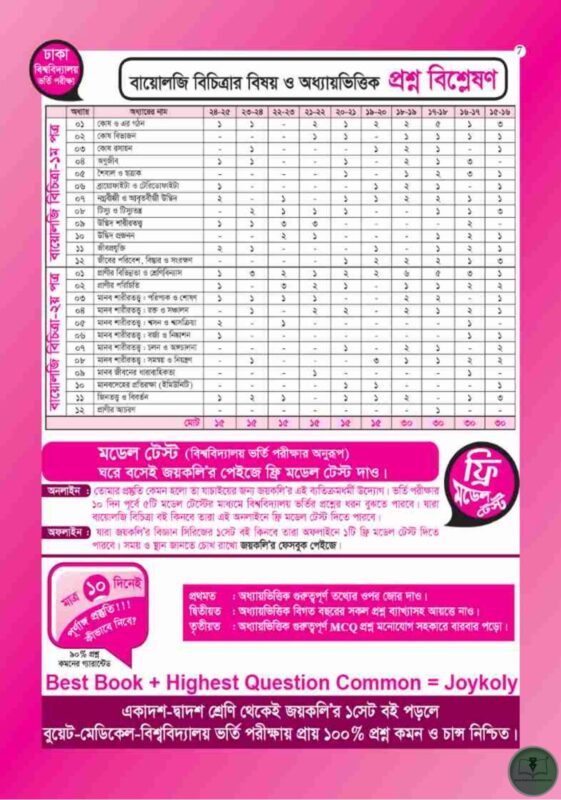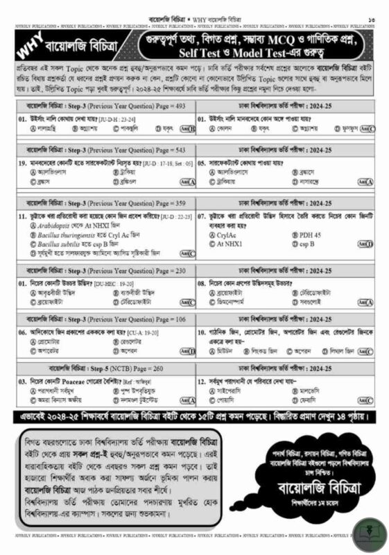 অভিজ্ঞ শিক্ষক ও মেধাবী শিক্ষার্থীদের সমন্বিত প্রয়াসে রচিত ঢাবি, জবি, জাবি, রাবি, চবি, খুবি, কুবি, শাবিপ্রবি, হাবিপ্রবি, জাতীয় বিশ্ববিদ্যালয়, কৃষি গুচ্ছ ও GST গুচ্ছ বিশ্ববিদ্যালয় ভর্তি পরীক্ষার সহায়ক সর্বোত্তম Text Book – জয়কলি বায়োলজি বিচিত্রা