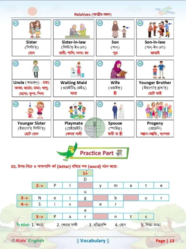 Kids’ English: Vocabulary เฆฌเฆ‡เฆŸเฆฟเฆคเง‡ เฆถเฆฟเฆถเงเฆฆเง‡เฆฐ เฆœเฆจเงเฆฏ เฆ‰เฆชเฆฏเง‹เฆ—เง€ เฆถเฆฌเงเฆฆเฆ—เงเฆฒเง‹เฆ•เง‡ เฆฐเฆ™เฆฟเฆจ เฆ›เฆฌเฆฟเฆฐ เฆฎเฆพเฆงเงเฆฏเฆฎเง‡ เฆคเงเฆฒเง‡ เฆงเฆฐเฆพ เฆนเงŸเง‡เฆ›เง‡เฅค เฆชเงเฆฐเฆคเฆฟเฆŸเฆฟ เฆ‡เฆ‚เฆฐเง‡เฆœเฆฟ เฆถเฆฌเงเฆฆเง‡เฆฐ เฆธเฆ™เงเฆ—เง‡ เฆฏเงเฆ•เงเฆค เฆ•เฆฐเฆพ เฆนเงŸเง‡เฆ›เง‡ เฆฌเฆพเฆ‚เฆฒเฆพ เฆ‰เฆšเงเฆšเฆพเฆฐเฆฃ, เฆฏเฆพเฆคเง‡ เฆถเฆฟเฆถเงเฆฐเฆพ เฆธเฆนเฆœเง‡เฆ‡ เฆถเฆฌเงเฆฆเฆ—เงเฆฒเง‹ เฆ†เงŸเฆคเงเฆคเง‡ เฆ†เฆจเฆคเง‡ เฆชเฆพเฆฐเง‡เฅค เฆชเงเฆฐเฆคเฆฟเฆŸเฆฟ เฆ…เฆงเงเฆฏเฆพเงŸเง‡เฆฐ เฆถเง‡เฆทเง‡ เฆฐเงŸเง‡เฆ›เง‡ เฆชเงเฆฐเงŸเง‹เฆœเฆจเง€เงŸ เฆ…เฆจเงเฆถเง€เฆฒเฆจ, เฆฏเฆพ เฆถเฆฟเฆ•เงเฆทเฆ• เฆ“ เฆ…เฆญเฆฟเฆญเฆพเฆฌเฆ•เฆฆเง‡เฆฐ เฆœเฆจเงเฆฏ เฆเฆ•เฆŸเฆฟ เฆจเฆฟเฆฐเงเฆฆเง‡เฆถเฆฟเฆ•เฆพ เฆนเฆฟเฆธเง‡เฆฌเง‡ เฆ•เฆพเฆœ เฆ•เฆฐเฆฌเง‡เฅค เฆธเฆฎเงเฆชเง‚เฆฐเงเฆฃ เฆฌเฆ‡เฆŸเฆฟ เฆซเง‹เฆฐ เฆ•เฆพเฆฒเฆพเฆฐ เฆ—เงเฆธเฆฟ เฆชเง‡เฆชเฆพเฆฐเง‡ เฆฎเงเฆฆเงเฆฐเฆฟเฆค, เฆฏเฆพ เฆถเฆฟเฆถเงเฆฆเง‡เฆฐ เฆ†เฆ•เงƒเฆทเงเฆŸ เฆ•เฆฐเฆฌเง‡ เฆเฆฎเฆจ เฆ—เงเฆฐเฆพเฆซเฆฟเฆ•เงเฆฏเฆพเฆฒ เฆญเฆฟเฆ‰เฆธเฆน เฆธเฆพเฆœเฆพเฆจเง‹ เฆนเงŸเง‡เฆ›เง‡เฅค “Kids’ English Vocabulary” เฆเฆ‡ เฆฌเฆ‡เฆŸเฆฟ เฆฏเง‡เฆ•เง‹เฆจเง‹ เฆ•เฆฟเฆจเงเฆกเฆพเฆฐเฆ—เฆพเฆฐเงเฆŸเง‡เฆจ เฆธเงเฆ•เงเฆฒ เฆฌเฆพ เฆชเงเฆฐเฆพเฆฅเฆฎเฆฟเฆ• เฆฌเฆฟเฆฆเงเฆฏเฆพเฆฒเงŸ เฆคเฆพเฆฆเง‡เฆฐ เฆ›เง‹เฆŸเงเฆŸ เฆธเง‹เฆจเฆพเฆฎเฆฃเฆฟเฆฆเง‡เฆฐ เฆœเฆจเงเฆฏ เฆคเฆพเฆฒเฆฟเฆ•เฆพเฆญเงเฆ•เงเฆค เฆฌเฆ‡ เฆนเฆฟเฆธเง‡เฆฌเง‡ เฆ—เงเฆฐเฆนเฆฃ เฆ•เฆฐเฆคเง‡ เฆชเฆพเฆฐเฆฌเง‡, เฆ‡เฆจเฆถเฆพเฆ†เฆฒเงเฆฒเฆพเฆนเฅค เฆ†เฆถเฆพ เฆ•เฆฐเฆฟ, เฆเฆ‡ เฆฌเฆ‡เฆŸเฆฟ เฆ†เฆชเฆจเฆพเฆฐ เฆธเฆจเงเฆคเฆพเฆจเง‡เฆฐ เฆถเฆฌเงเฆฆเฆญเฆพเฆฃเงเฆกเฆพเฆฐ เฆธเฆฎเงƒเฆฆเงเฆง เฆ•เฆฐเฆพเฆฐ เฆฏเฆพเฆคเงเฆฐเฆพเงŸ เฆเฆ•เฆŸเฆฟ เฆฌเฆฟเฆถเงเฆฌเฆธเงเฆค เฆธเฆ™เงเฆ—เง€ เฆนเงŸเง‡ เฆ‰เฆ เฆฌเง‡เฅค