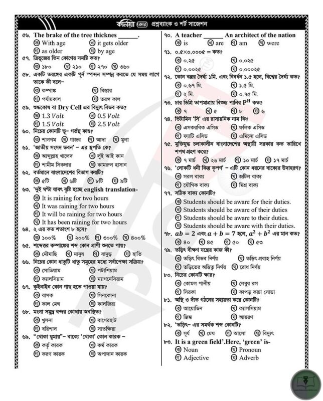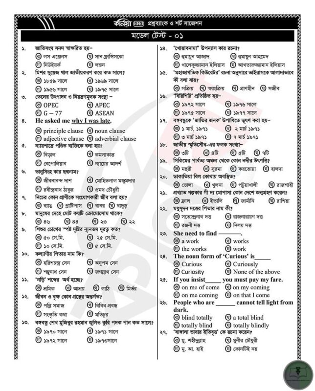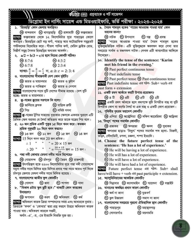 কর্নিয়া কোর নার্সিং প্রশ্ন ব্যাংক ও মডেল টেস্ট