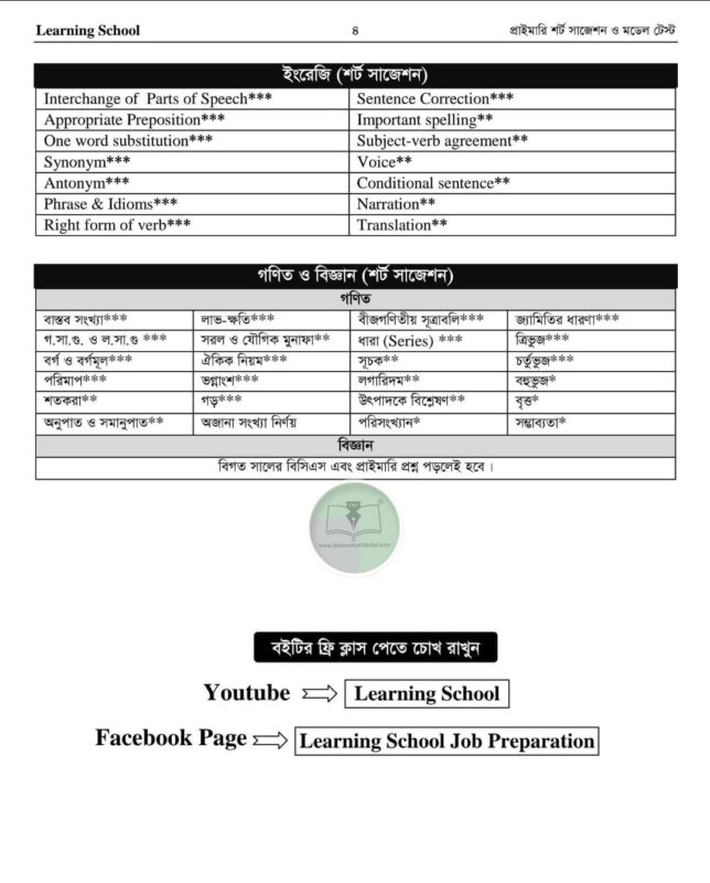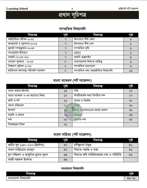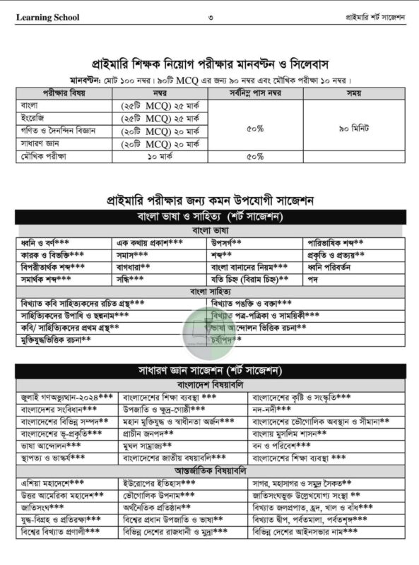 লার্নিং স্কুল প্রাইমারি শর্ট সাজেশন (৩য় সংস্করণ)