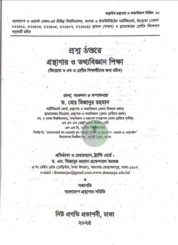 Be the first to review “প্রশ্ন উত্তরে গ্রন্থাগার ও তথ্যবিজ্ঞান শিক্ষা (প্রথম সেমিস্টার ২০২৫)” Cancel reply