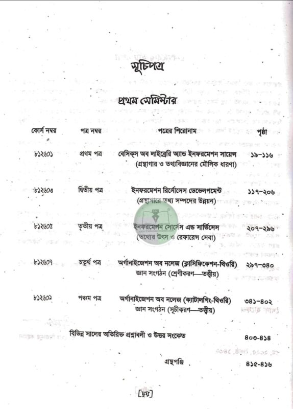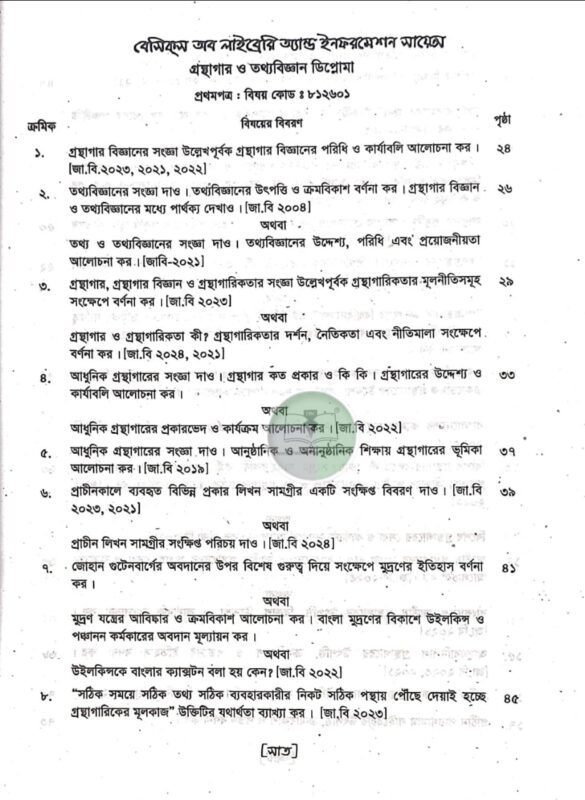 প্রশ্ন উত্তরে গ্রন্থাগার ও তথ্যবিজ্ঞান শিক্ষা (প্রথম সেমিস্টার ২০২৫)