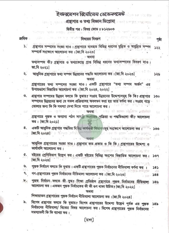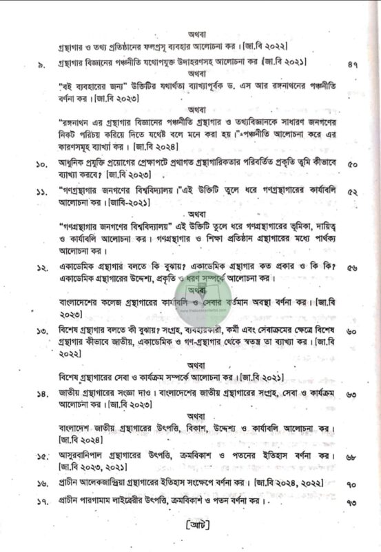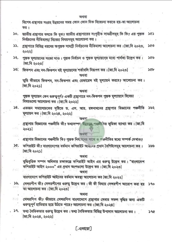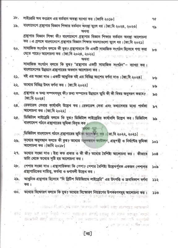 প্রশ্ন উত্তরে গ্রন্থাগার ও তথ্যবিজ্ঞান শিক্ষা (২য় সেমিস্টার ২০২৫)