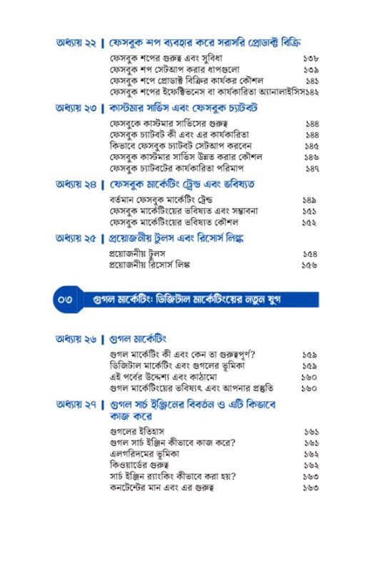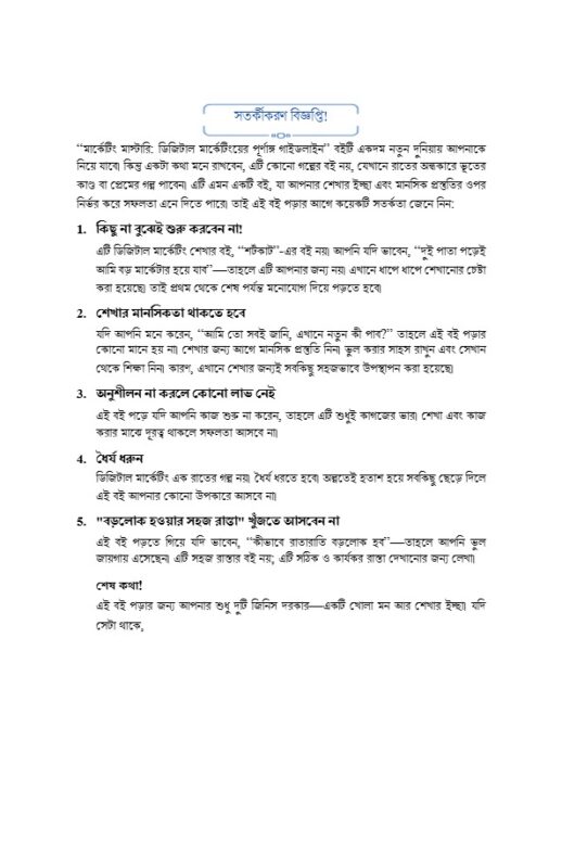 মার্কেটিং অ্যান্ড মাস্টারি: ডিজিটাল মার্কেটিংয়ের পূর্ণাঙ্গ গাইডলাইন” বইটি একদম নতুন চিন্তাভাবনায় আপনাকে নিয়ে যাবে। এই বইটি তাদের জন্য যারা ডিজিটাল মাকেটিং মানে ফেসবুক বুস্টিংকে বুঝেন। কিন্তু একটা কথা মনে রাখবেন—এটি কোনো গড়পড়তা বই নয়, যেখানে রাত্রির অন্ধকারে ভৌতিক গল্প বা ফ্যান্টাসি পাবেন। এটি এমন একটি বই যা আপনার শেখার আগ্রহ এবং মানসিক প্রস্তুতির ওপর নির্ভর করে আপনাকে সাফল্যের দিকে নিয়ে যেতে সক্ষম।এটি ডিজিটাল মার্কেটিংয়ে সফল হওয়ার জন্য একটি সম্পূর্ণ গাইডলাইন, যা বাস্তব অভিজ্ঞতা এবং প্রমাণিত কৌশলের ওপর ভিত্তি করে তৈরি।
