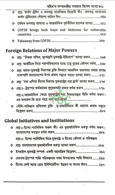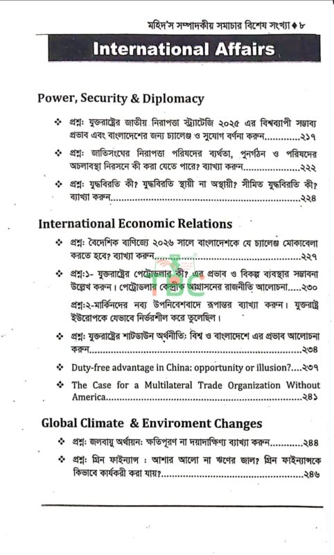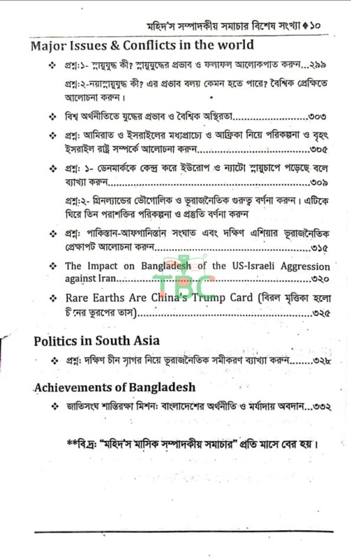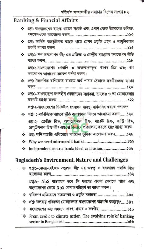 সুপ্রিয় পাঠক, আশা করি সবাই ভাল আছেন। ৫০তম বিসিএস লিখিত পরীক্ষার্থীদের জন্য সিলেবাস ভিত্তিক অনুসরণ করে সাম্প্রতিক বিষয়গুলি নিয়ে প্রণয়ন করা হয়েছে “মহিদ’স বিশেষ সংখ্যা (মার্চ ২০২৬)” এই বইটি। বিশ্লেষণমূলক ও পয়েন্ট আকারেসহ প্রশ্ন আকারে উপস্থাপন করায় শিক্ষার্থীদের জন্য উপকারী হবে বলে আমি আশা রাখি। তাছাড়া ব্যাংক ও আর্থিক বিষয়ে থাকছে বিভিন্ন গুরুত্বপূর্ণ হালনাগাদ উপাত্ত ও তথ্যের সমাহার। বিসিএস (লিখিত) ও ভাইভা পরীক্ষার জন্য “মহিদ’স বিশেষ সংখ্যা (মার্চ ২০২৬)” বইটিতে থাকছে সমসাময়িক অনেক গুরুত্বপূর্ণ বিষয়।