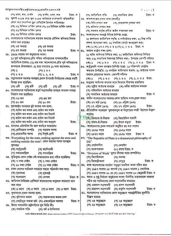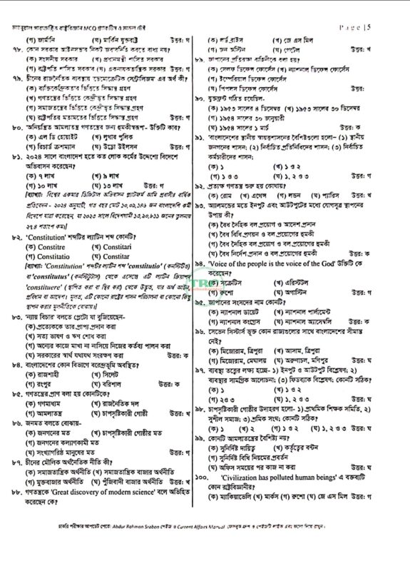 ম্যানুয়াল ১৯তম সাবজেক্টিভ রাষ্ট্রবিজ্ঞান মডেল টেস্ট MCQ