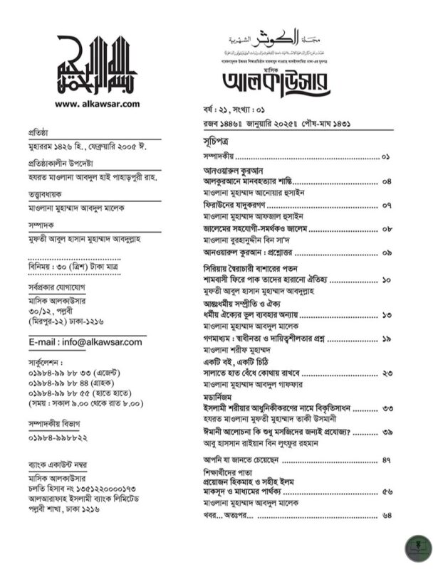 মাসিক আল কাউসার ( জানুয়ারি-২০২৫)