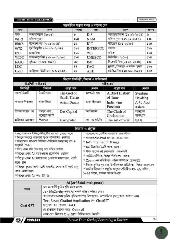 ‘Medi GKE Bulletin and Supplement’—মেডিকেল ভর্তি পরীক্ষার General Knowledge (GKE) ও English প্রস্তুতির জন্য সবচেয়ে সংক্ষিপ্ত, কার্যকর এবং সময়োপযোগী একটি পূর্ণাঙ্গ প্যাকেজ। মাত্র ২০০ পৃষ্ঠার Medi GKE Bulletin বইটি অত্যন্ত যত্নসহকারে সাজানো হয়েছে যাতে পরীক্ষায় সর্বোচ্চ কমন নিশ্চিত হয়। সাম্প্রতিক ঘটনাবলি, বাংলাদেশ বিষয়াবলি, আন্তর্জাতিক বিষয়াবলি, বিজ্ঞান, ইংরেজি এবং মৌলিক জিকে—সবকিছু এখানে সহজভাবে উপস্থাপিত। বইটির সাথে রয়েছে ১০টি বিশেষ ক্লাস ও এক্সাম, যা মেডিকেল ভর্তি পরীক্ষার জন্য প্রয়োজনীয় আপডেটেড GKE প্রস্তুতিকে আরও শক্তিশালী করে। অভিজ্ঞ শিক্ষকদের অভিজ্ঞতায় তৈরি এই ক্লাসগুলোতে আলোচনা করা হয় সর্বশেষ কারেন্ট অ্যাফেয়ার্স, গুরুত্বপূর্ণ টপিক ও পরীক্ষাভিত্তিক প্রশ্ন বিশ্লেষণ। সাথে রয়েছে GKE Supplement, যা মূল বইটির পরিপূরক হিসেবে অতিরিক্ত জরুরি তথ্য, শর্ট নোট, এবং গুরুত্বপূর্ণ আপডেট সরবরাহ করে। Supplement-এর মাধ্যমে শিক্ষার্থী খুব অল্প সময়ে উচ্চমানের রিভিশন করতে পারে। মানাবি পাবলিকেশন্স প্রকাশিত এই বইটি এমনভাবে সাজানো হয়েছে যাতে কম পৃষ্ঠার মধ্যেই মেডিকেল ভর্তি পরীক্ষার GKE অংশের পূর্ণাঙ্গ প্রস্তুতি সম্পন্ন করা যায়। সময় সাশ্রয়ী, পরীক্ষাভিত্তিক, এবং সর্বোচ্চ কমনমুখী হওয়ায় এটি মেডিকেল ভর্তিচ্ছু শিক্ষার্থীদের জন্য একটি অবশ্যপাঠ্য বই।