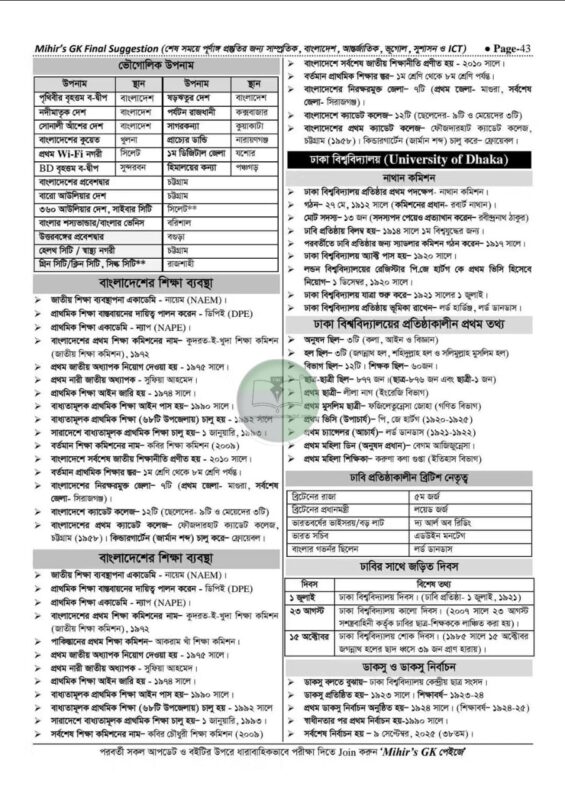 মিহির’স GK ফাইনাল সাজেশন ২০২৫-২০২৬