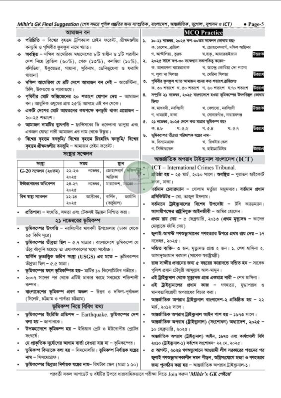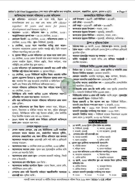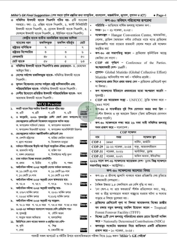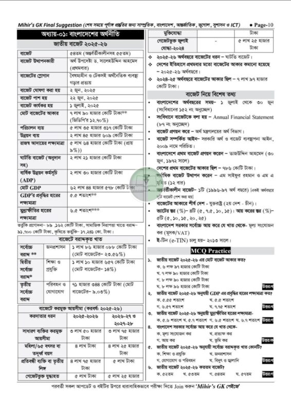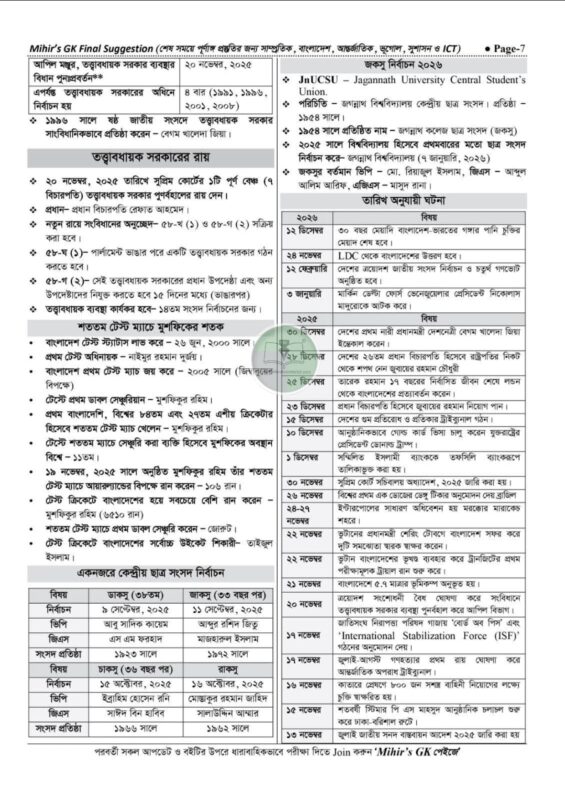 মিহির’স GK ফাইনাল সাজেশন ২০২৬
