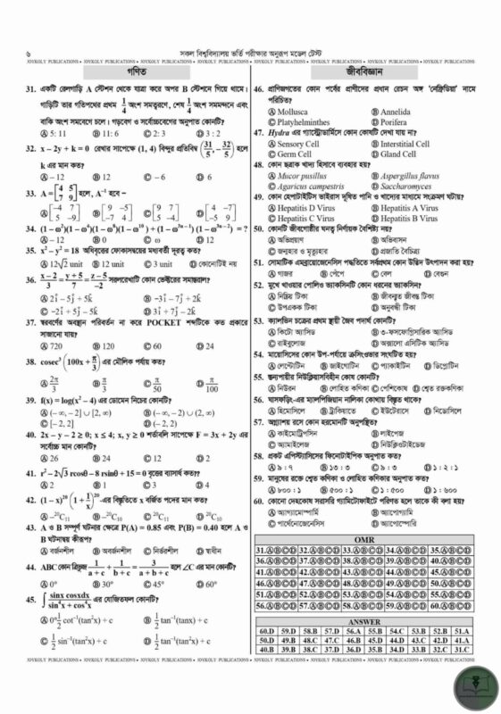 জয়কলি মডেল টেস্ট বিজ্ঞান বিভাগ হলো বিজ্ঞান বিভাগের বিশ্ববিদ্যালয় ভর্তি পরীক্ষার্থীদের জন্য একটি পূর্ণাঙ্গ, বাস্তবভিত্তিক ও ফলপ্রসূ মডেল টেস্ট বই। অভিজ্ঞ শিক্ষক ও মেধাবী শিক্ষার্থীদের সমন্বিত প্রয়াসে রচিত ঢাবি, জবি, জাবি, রাবি, চবি, খুবি, কুবি, শাবিপ্রবি, হাবিপ্রবি, জাতীয় বিশ্ববিদ্যালয়, কৃষি গুচ্ছ ও GST গুচ্ছ বিশ্ববিদ্যালয় ভর্তি পরীক্ষার সর্বোত্তম – জয়কলি মডেল টেস্ট বিজ্ঞান বিভাগ টেস্ট বই।