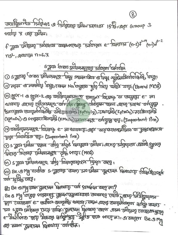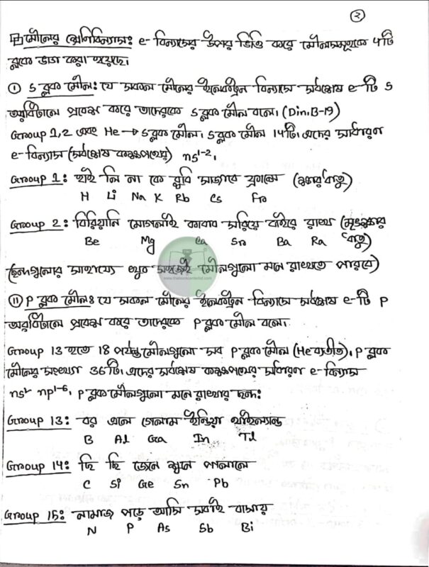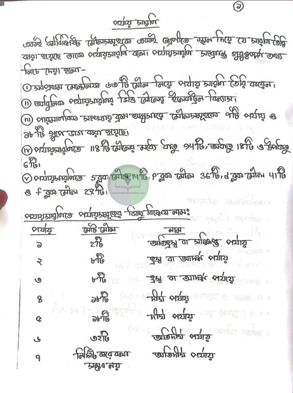 মৌলের পর্যায়বৃত্ত ধর্ম ও রাসায়নিক বন্ধন কনসেপ্ট নোটস