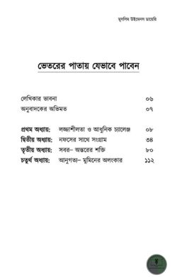 আমাদের জীবনে অনেক সময় এমন কিছু সমস্যার মুখোমুখি হতে হয়, যা আমরা সহজে অন্য কারো সঙ্গে ভাগ করে নিতে পারি না—বিশেষ করে যখন বিষয়টি ইসলামিক হয়। অনেক সময় সমাজের দৃষ্টিভঙ্গি, ভুল বোঝাবুঝি কিংবা সমালোচনার ভয়ে আমরা মুখ খুলতে সাহস পাই না।আরও কঠিন হয়ে পড়ে যখন আমাদের পাশে এমন কেউ না থাকে, যাকে আমরা বিশ্বাস করতে পারি বা যার সঙ্গে অন্তরের কথা ভাগ করে নিতে পারি। এমনও হয়তো হয়েছে—আপনার কোনো ইসলামিক সমস্যায় সাহায্য করার মতো সঠিক বন্ধু, বড় বোন বা বিশ্বস্ত কেউ পাশে নেই।এই বিষয়গুলো মাথায় রেখে কিছু প্রশ্ন ও উত্তর একত্রিত করা হয়েছে, যেগুলোর উত্তর জানা সকলে নারীর জন্য এক সময় খুব প্রয়োজন। এই বইয়ে এমন কিছু কথা শেয়ার করা হয়েছে, যা হয়তো আপনি প্রথমবার শুনছেন, নয়তো দ্বিতীয়বার হলেও এটি আপনাকে গভীরভাবে মনে করিয়ে দিচ্ছে।বইটিতে একজন মুসলিম নারীর দৃষ্টিভঙ্গিতে জীবন, ঈমান, হতাশা, আত্মবিশ্বাস, পর্দা, নারীত্ব, সমাজের চাপ এবং আল্লাহর প্রতি ভালোবাসা ও নির্ভরতার বিষয়গুলো গভীর আবেগ ও গভীরতা নিয়ে উপস্থাপিত হয়েছে।
