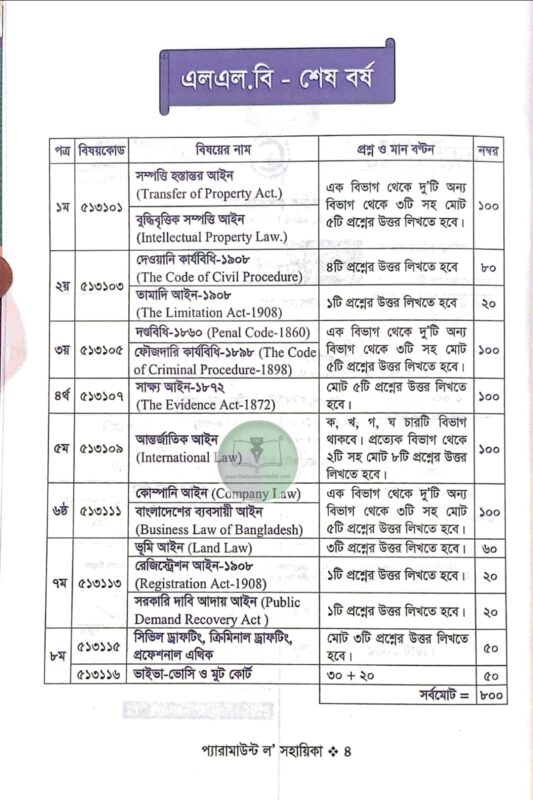 প্যারামাউন্ট এলএল.বি শেষ বর্ষ নতুন সংস্করণ