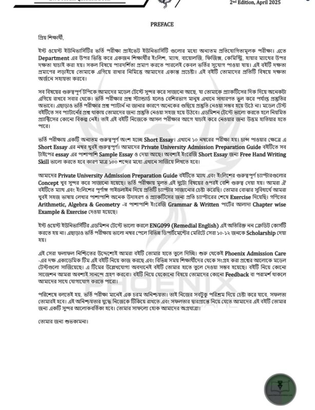Be the first to review “Phoenix East West University Model Question Book” Cancel reply